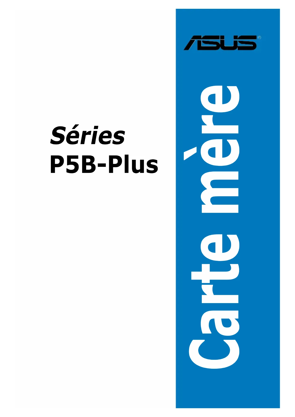 Carte mère Séries P5B-Plusii F3077 Première édition V1 Février 2007 Copyright © 2007 ASUSTeK COMPUTER INC. Tous droits réservés. Aucun extrait de ce manuel, incluant les produits et logiciels qui y sont décrits, ne peut être reproduit, transmis, transcrit, stocké dans un système de restitution, ou traduit dans quelque langue que ce soit sous quelque forme ou quelque moyen que ce soit, à l’exception de la documentation conservée par l’acheteur dans un but de sauvegarde, sans la permission écrite expresse de ASUSTeK COMPUTER INC. (“ASUS”). La garantie sur le produit ou le service ne sera pas prolongée si (1) le produit est réparé, modié ou altéré, à moins que cette réparation, modication ou altération ne soit autorisée par écrit par ASUS; ou (2) si le numéro de série du produit est dégradé ou manquant. ASUS FOURNIT CE MANUEL “TEL QUE” SANS GARANTIE D’AUCUNE SORTE, QU’ELLE SOIT EXPRESSE OU IMPLICITE,COMPRENANT MAIS SANS Y ETRE LIMITE LES GARANTIES OU CONDITIONS DE COMMERCIALISATION OU D’APTITUDE POUR UN USAGE PARTICULIER. EN AUCUN CAS ASUS, SES DIRECTEURS, CADRES, EMPLOYES OU AGENTS NE POURRONT ÊTRE TENUS POUR RESPONSABLES POUR TOUT DOMMAGE INDIRECT, SPECIAL, SECONDAIRE OU CONSECUTIF (INCLUANT LES DOMMAGES POUR PERTE DE PROFIT, PERTE DE COMMERCE, PERTE D‘UTILISATION DE DONNEES, INTERRUPTION DE COMMERCE ET EVENEMENTS SEMBLABLES), MEME SI ASUS A ETE INFORME DE LA POSSIBILITE DE TELS DOMMAGES PROVENANT DE TOUT DEFAUT OU ERREUR DANS CE MANUEL OU DU PRODUIT. LES SPECIFICATIONS ET INFORMATIONS CONTENUES DANS CE MANUEL SONT FOURNIES A TITRE INFORMATIF SEULEMENT, ET SONT SUJETTES A CHANGEMENT A TOUT MOMENT SANS AVERTISSEMENT ET NE DOIVENT PAS ETRE INTERPRETEES COMME UN ENGAGEMENT DE LA PART D’ASUS. ASUS N‘ASSUME AUCUNE RESPONSABILITE POUR TOUTE ERREUR OU INEXACTITUDE QUI POURRAIT APPARAITRE DANS CE MANUEL, INCLUANT LES PRODUITS ET LOGICIELS QUI Y SONT DECRITS. Les produits et noms de sociétés qui apparaissent dans ce manuel ne sont utilisés que dans un but d’identication ou d’explication dans l’intérêt du propriétaire, sans intention de contrefaçoniii Table des matières Notes ........................................................................................................ vii Informations de sécurité .......................................................................... viii A propos de ce guide ................................................................................. ix Séries P5B-Plus : les caractéristiques en bref ........................................ xi