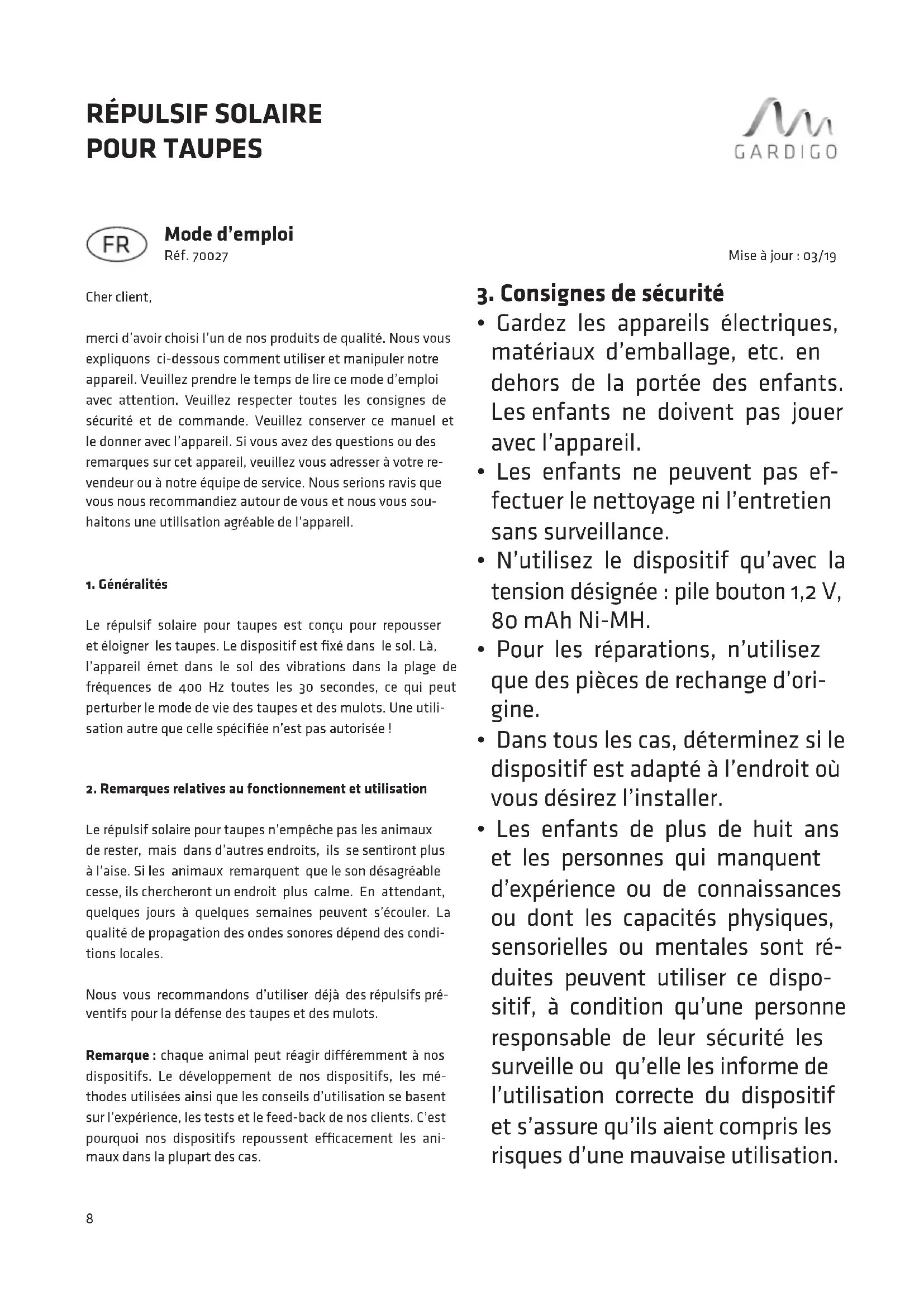 MODE D'EMPLOI 70027 Gardigo