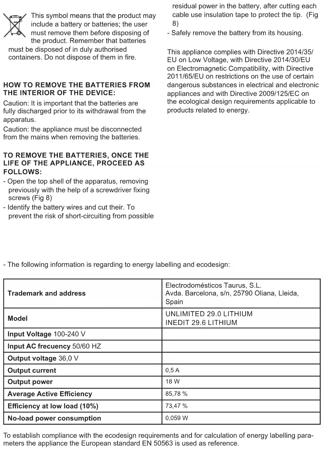 Unlimited 29.0 Lithium - Aspirateur TAURUS - Notice d'utilisation et mode d'emploi gratuit