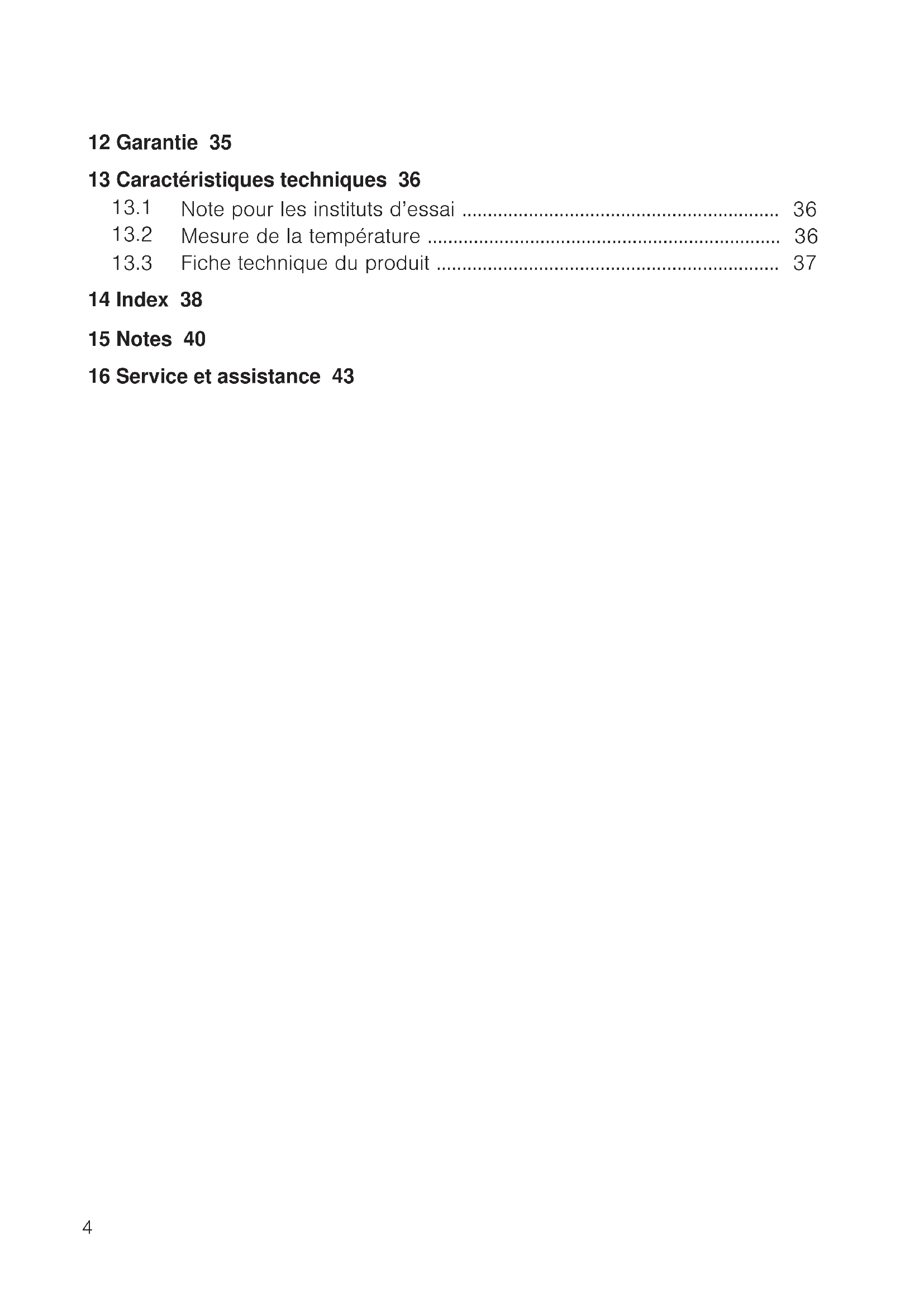 Fiche technique du produit ................................................................... 37 14 Index 38 15 Notes 40 16 Service et assistance 43 41 Consignes de sécurité