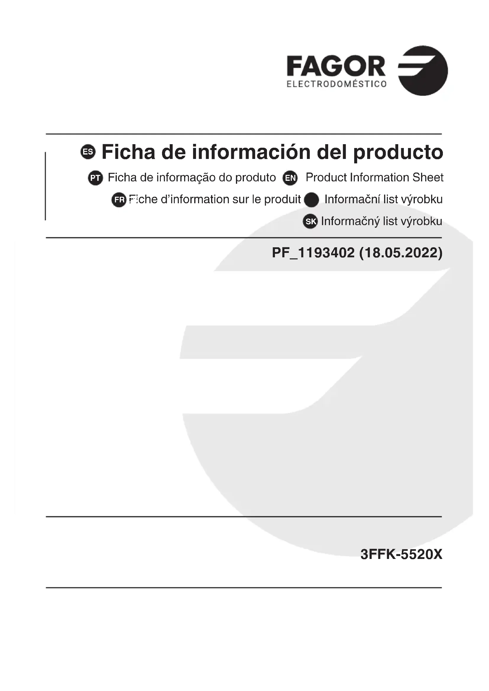 Retrouvez gratuitement la notice de l'appareil 3FFK5520X FAGOR au format PDF.