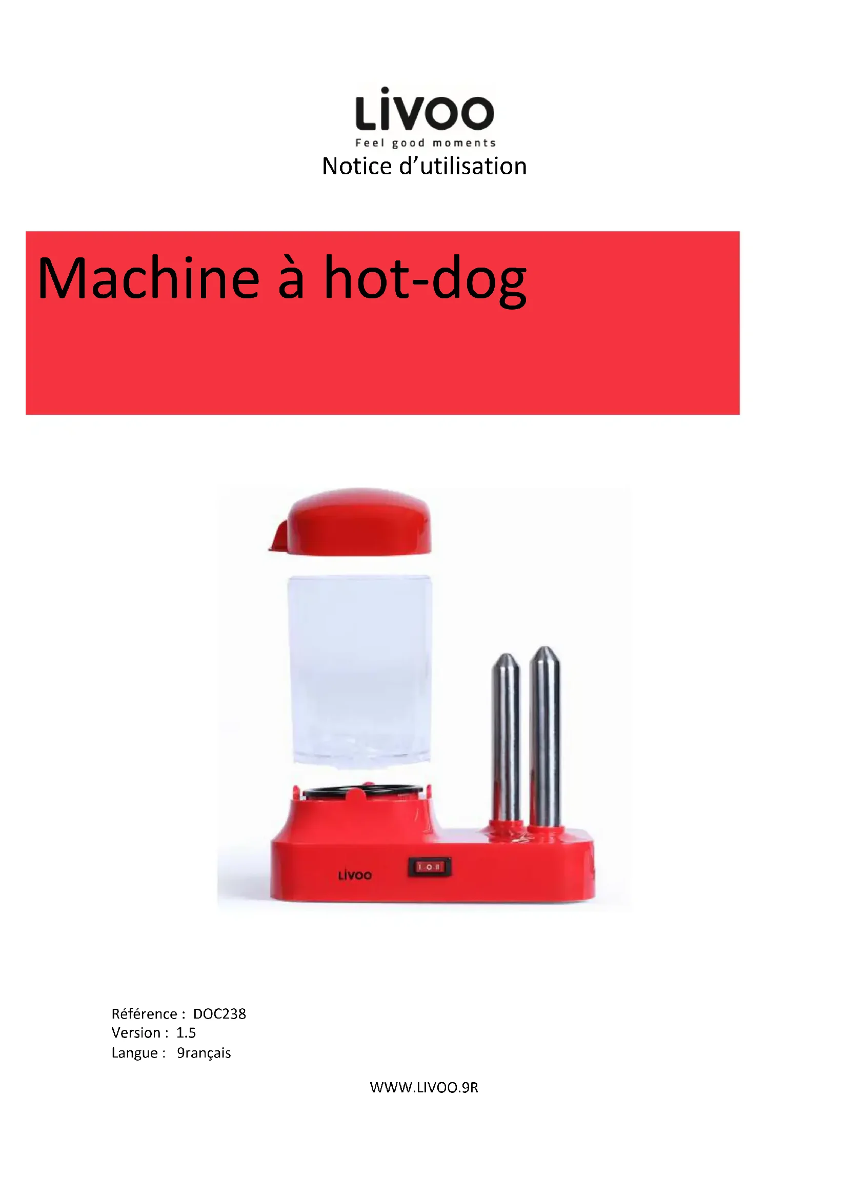 Référence : DOC238 Version : 1.5 Langue : Français Machine à hot-dogNotice d’utilisation