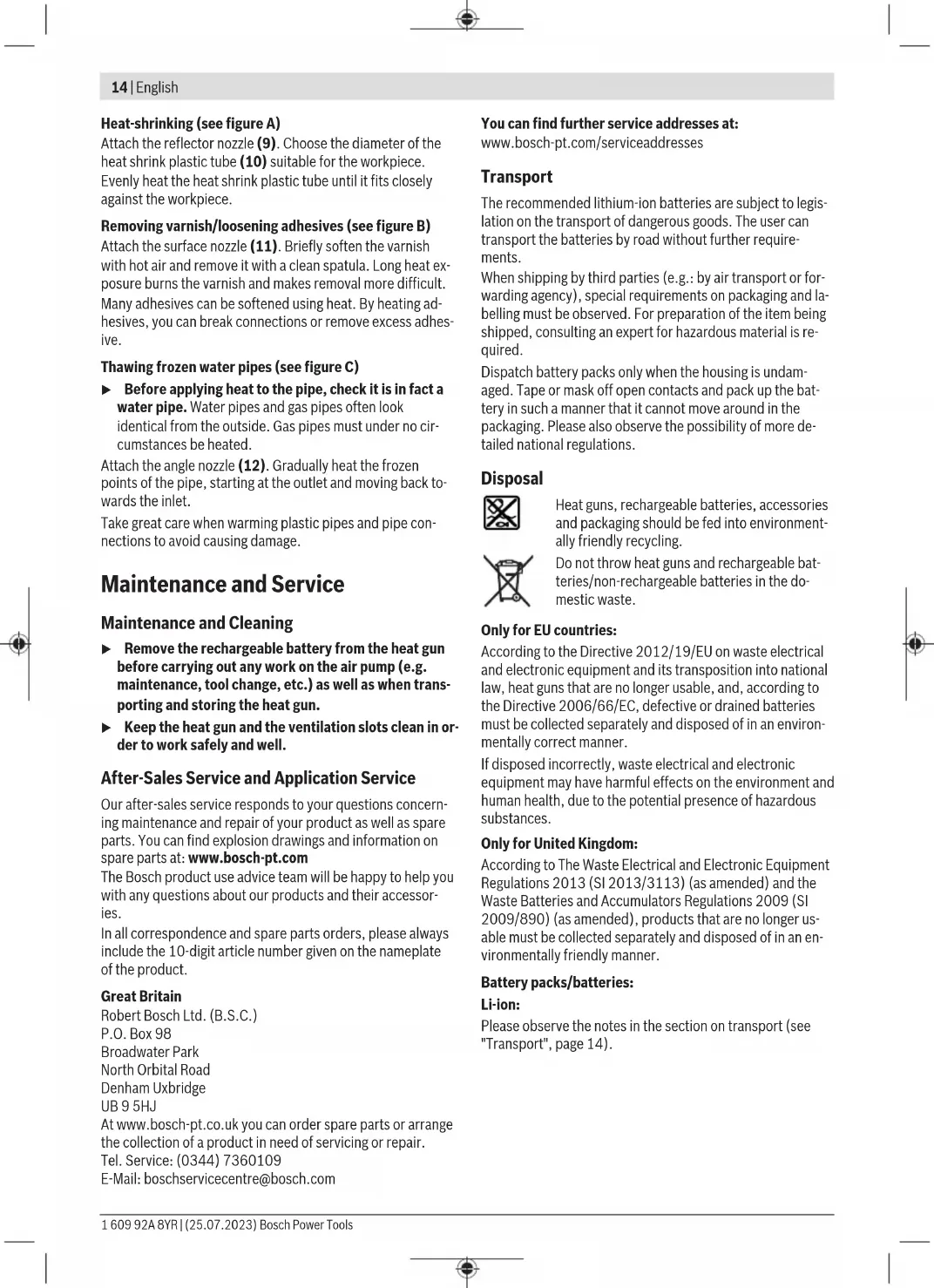 | Maintenance et réparation | Nettoyer régulièrement l'embout et vérifier l'état du filtre d'air. Remplacer les pièces usées par des pièces d'origine Bosch. |