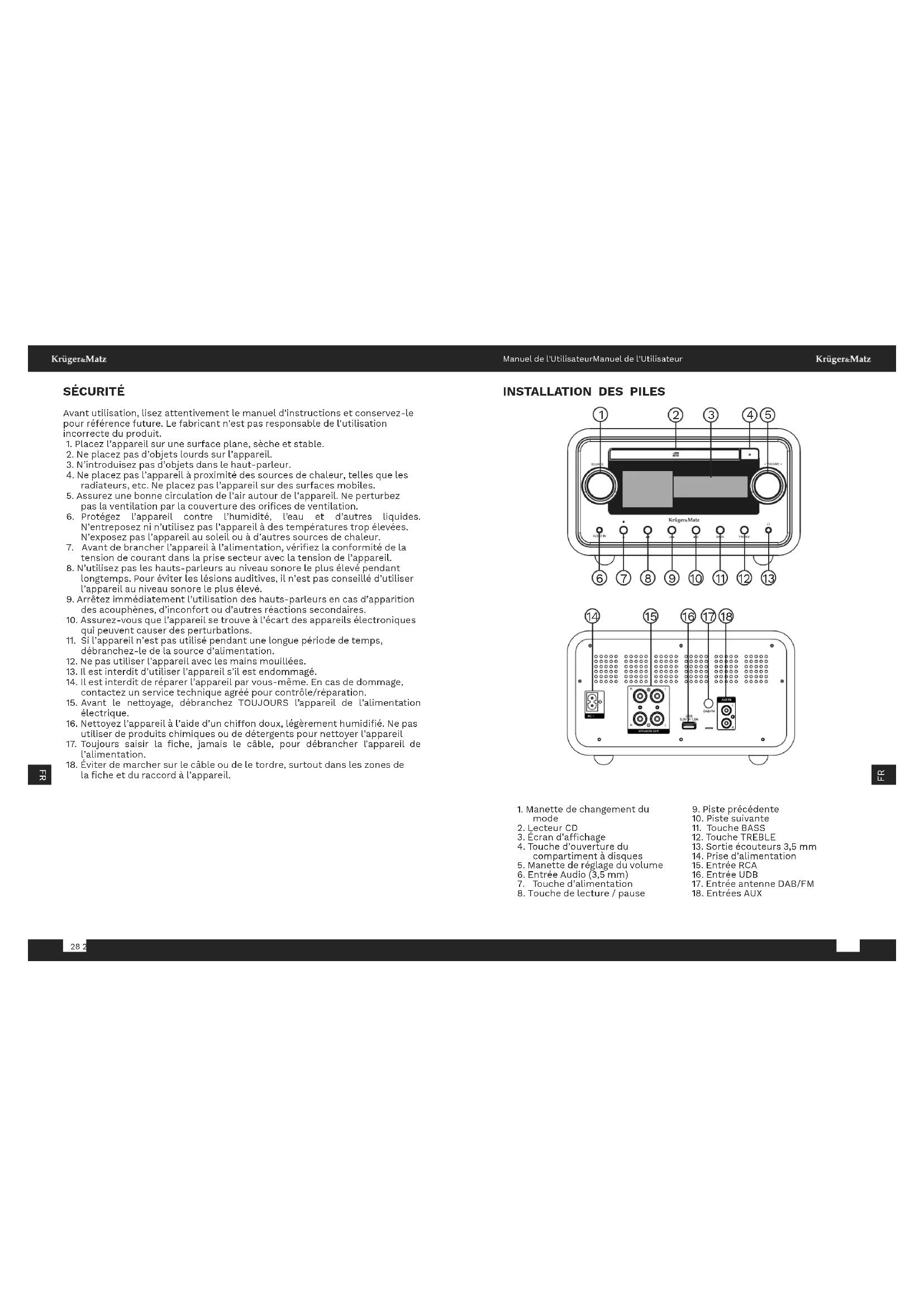 KM1961 - Système hifi Krüger&Matz - Notice d'utilisation et mode d'emploi gratuit