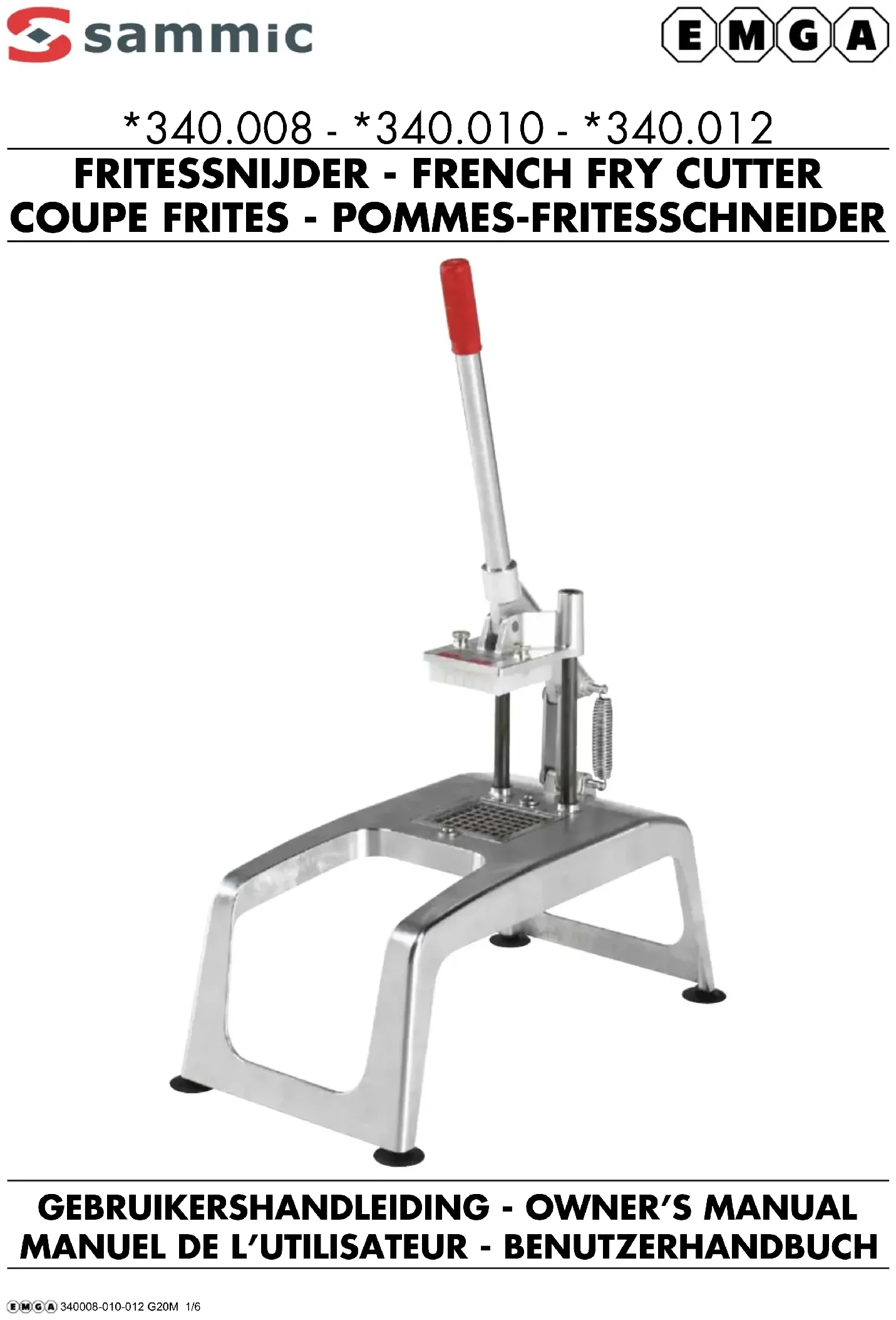 The CF-5 hand-operated potato chipper can be fitted with grid-pusher sets in the follo- wing sizes: - 8x8 mm - 10x10 mm - 12x12 mm 340008-010-012 G20M 3/6Cette notice décrit le montage et l'entretien du coupe-frites manuel CF-5. Cet appareil est conçu et fabriqué conformé- ment à la Directive européenne Machines 98/37 CEE.