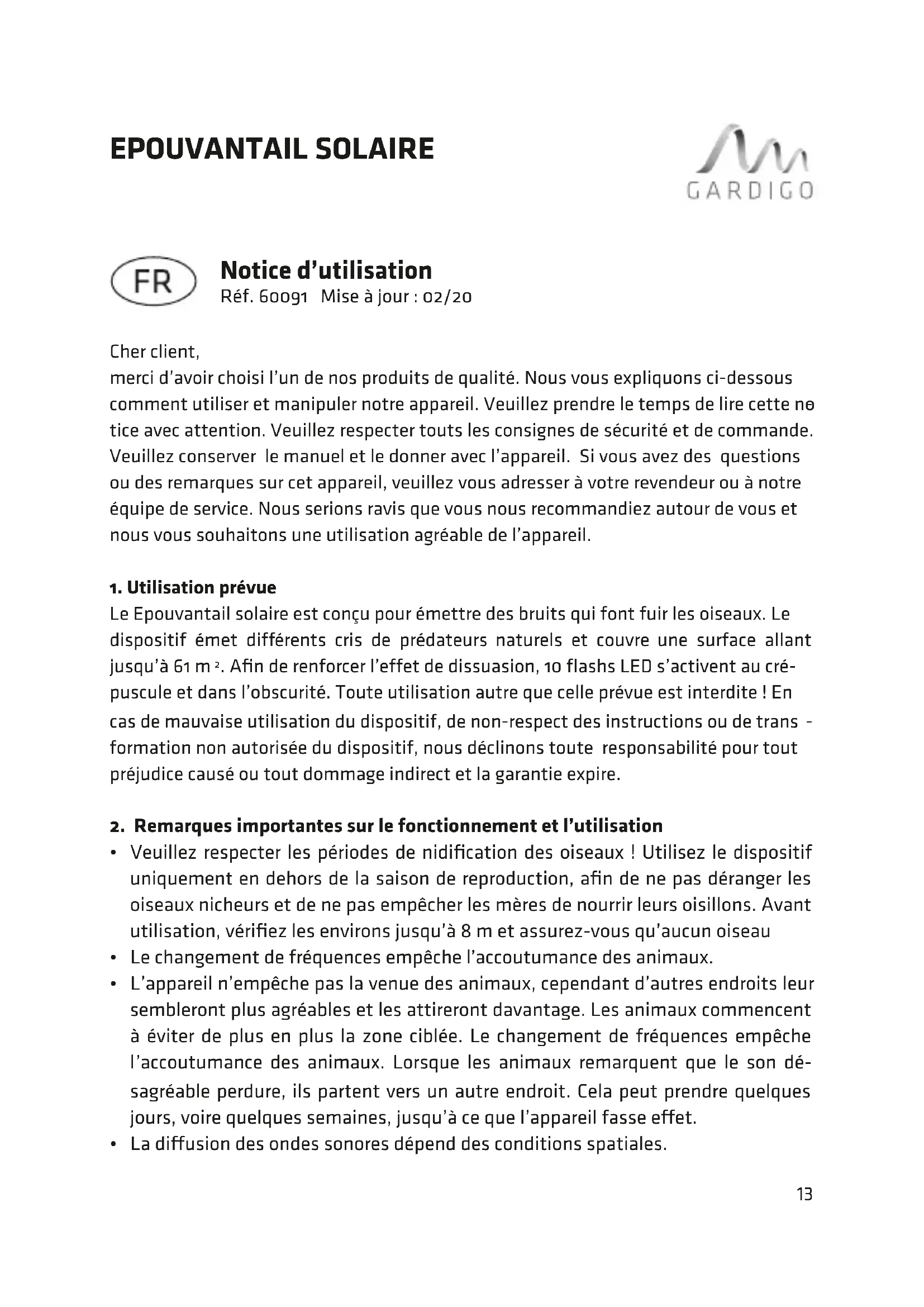 MODE D'EMPLOI 60091 Gardigo