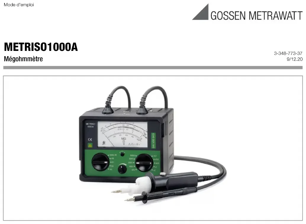 MODE D'EMPLOI Metriso 1000A Gossen Metrawatt