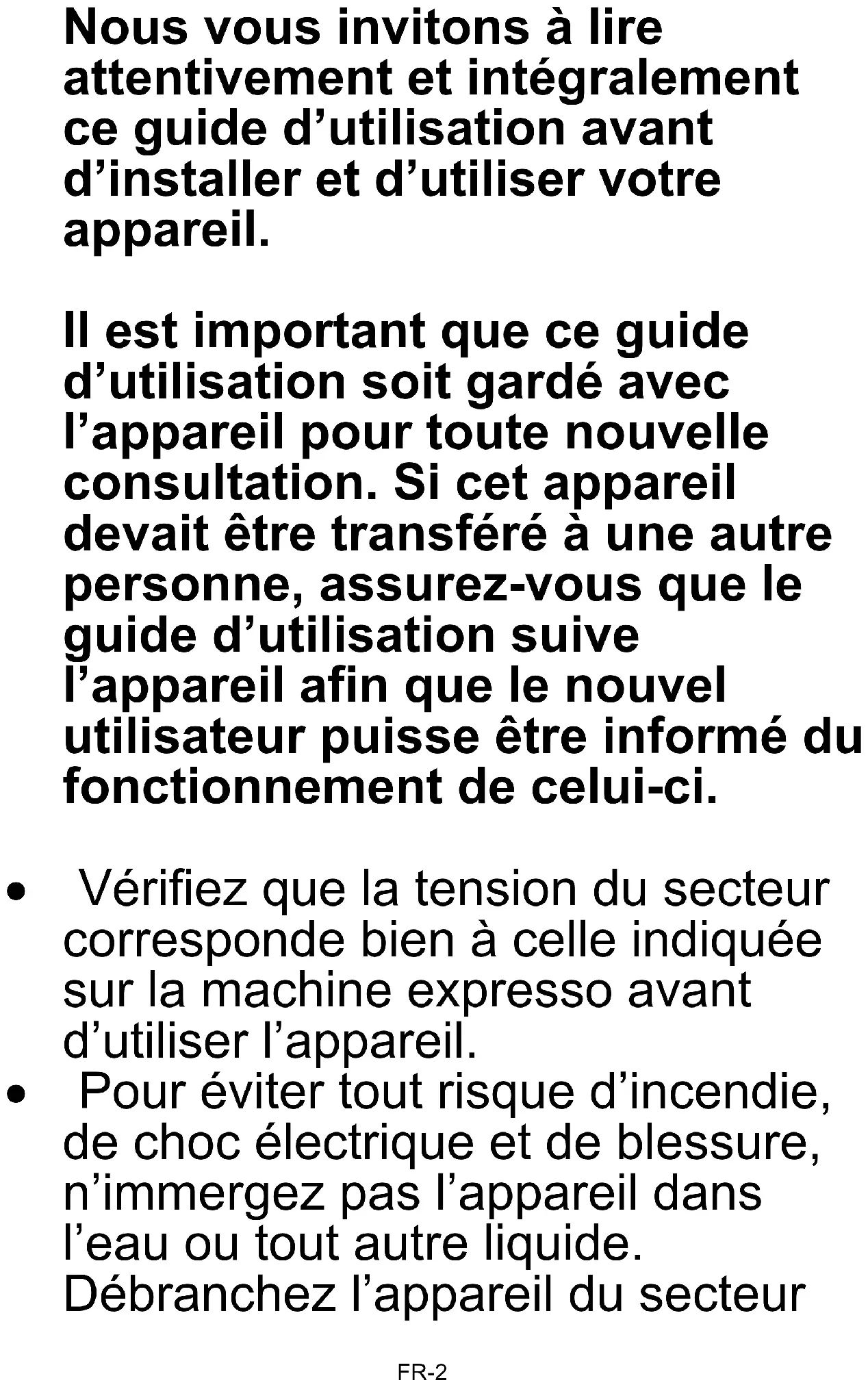 Nous vous invitons à lire attentivement et intégralement ce guide d’utilisation avant d’installer et d’utiliser votre appareil. Il est important que ce guide d’utilisation soit gardé avec l’appareil pour toute nouvelle consultation. Si cet appareil devait être transféré à une autre personne, assurez-vous que le guide d’utilisation suive l’appareil afin que le nouvel utilisateur puisse être informé du fonctionnement de celui-ci.