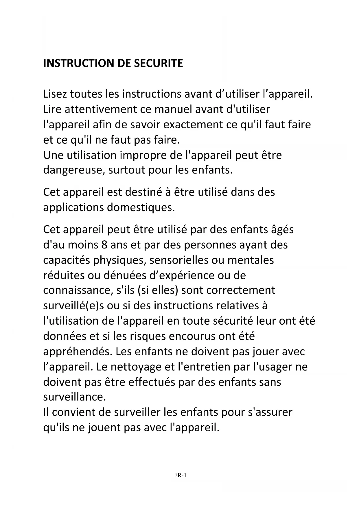 - Ne pas permettre que l'appareil soit utilisé par des enfants en l'absence de surveillance;