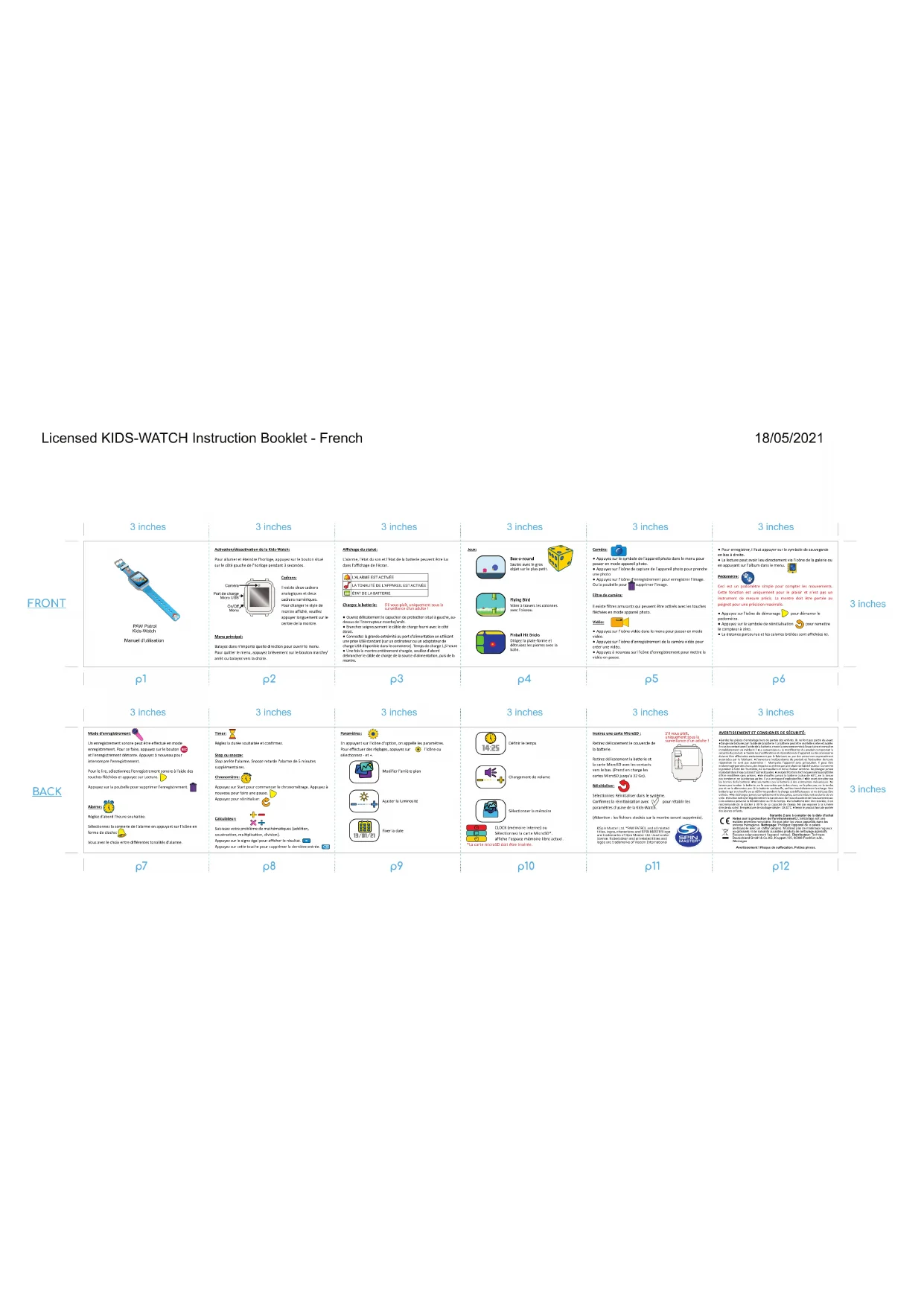 | Sécurité | Verrouillage de l'écran, protection contre les chocs, utilisation de matériaux hypoallergéniques. |