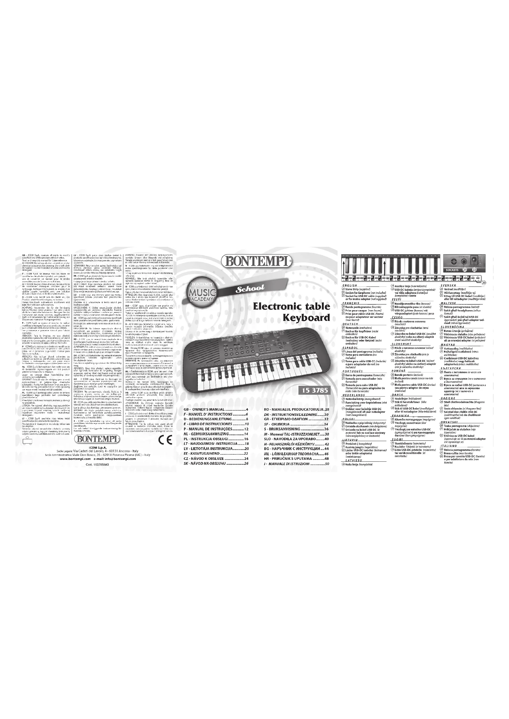 15 3785 - Clavier BONTEMPI - Notice d'utilisation et mode d'emploi gratuit