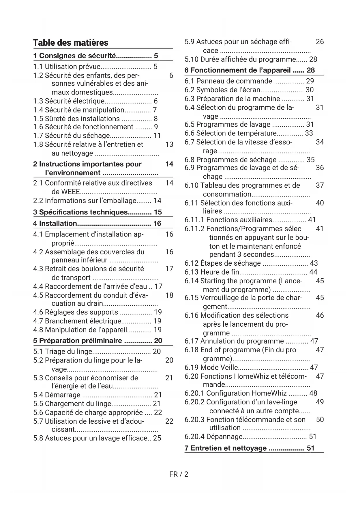 Laveuse-sécheuse Manuel d'utilisation B5DT59442W 2820530525/ FR/ / 13/10/2022 14:55FR / 2 Table des matières 1 Consignes de sécurité.................. 5