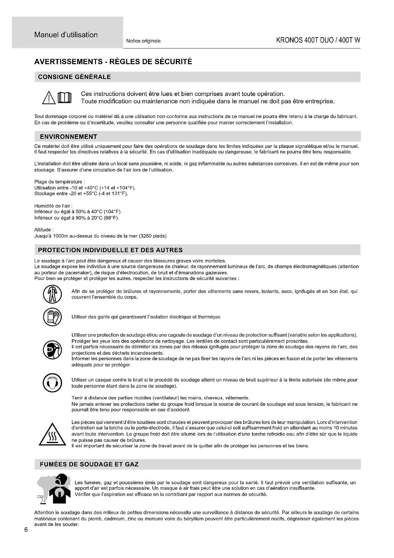 Retrouvez gratuitement la notice de l'appareil Kronos 400T W GYS au format PDF.