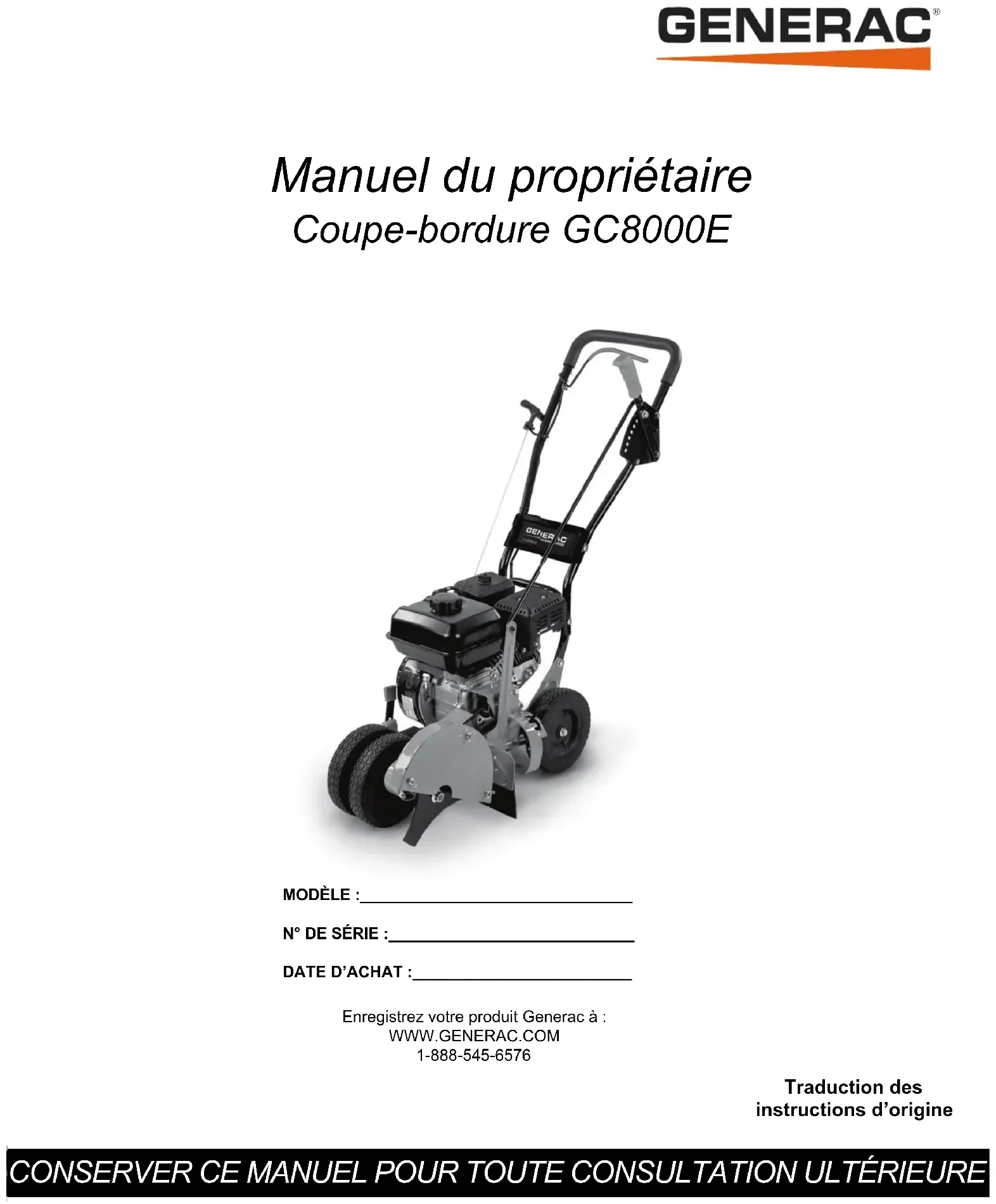 CONSERVER CE MANUEL POUR TOUTE CONSULTATION ULTÉRIEURE Enregistrez votre produit Generac à :