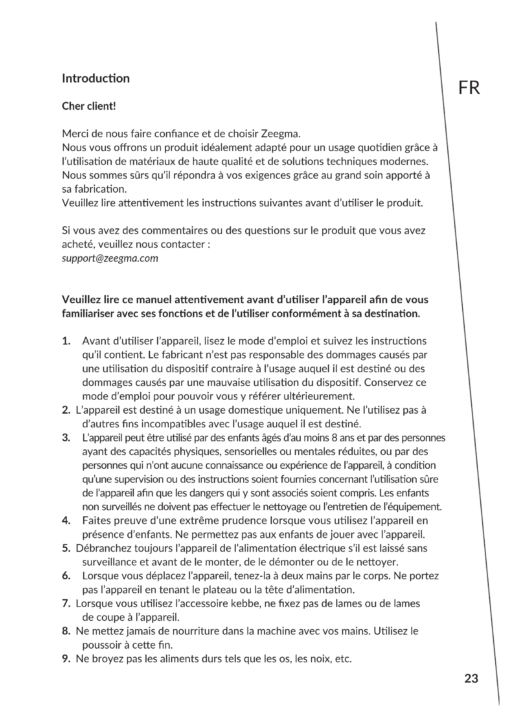 9. Ne broyez pas les aliments durs tels que les os, les noix, etc.24