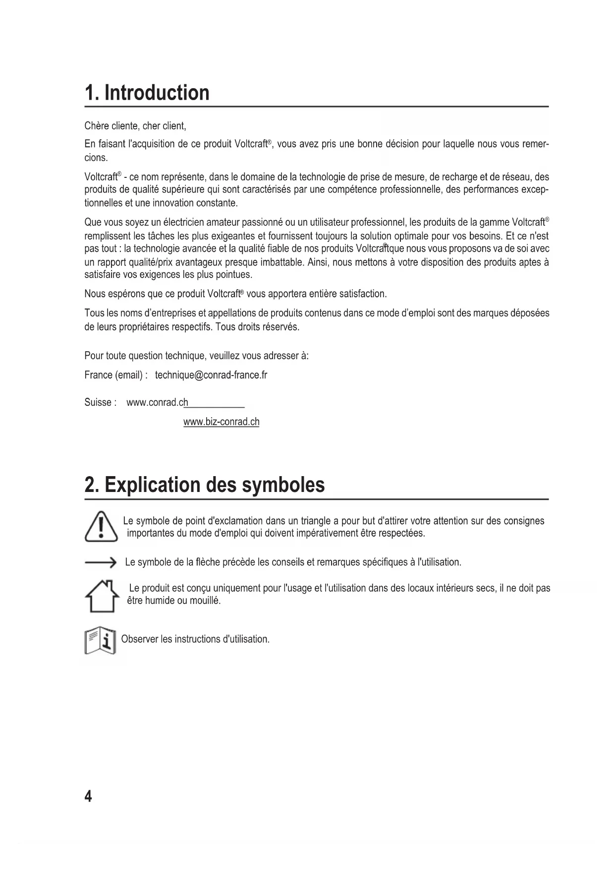 - ce nom représente, dans le domaine de la technologie de prise de mesure, de recharge et de réseau, des produits de qualité supérieure qui sont caractérisés par une compétence professionnelle, des performances excep- tionnelles et une innovation constante. Que vous soyez un électricien amateur passionné ou un utilisateur professionnel, les produits de la gamme Voltcraft