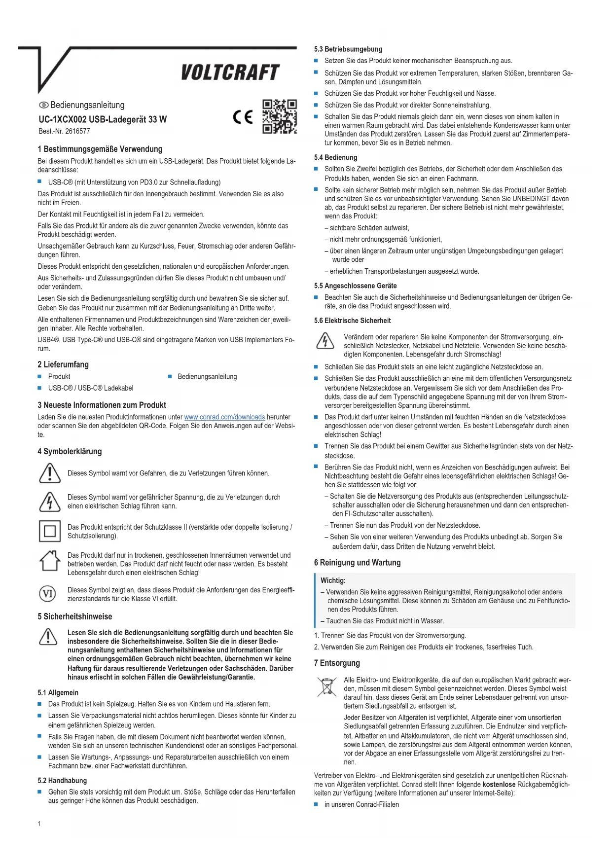 Retrouvez gratuitement la notice de l'appareil UC1XCX002 VOLTCRAFT au format PDF.