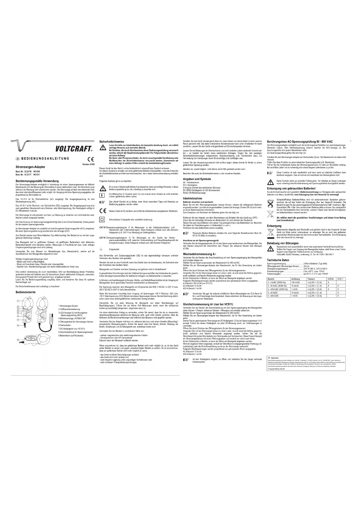 Retrouvez gratuitement la notice de l'appareil VC511 VOLTCRAFT au format PDF.