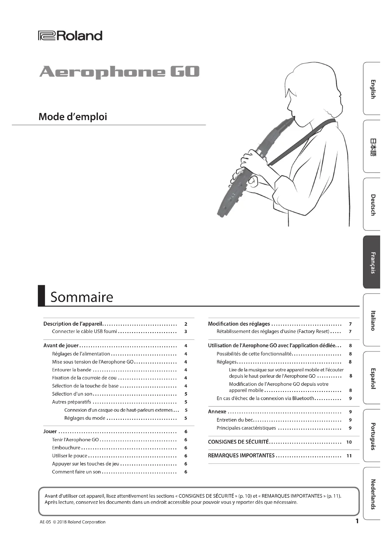 Retrouvez gratuitement la notice de l'appareil Aerophone GO ROLAND au format PDF.