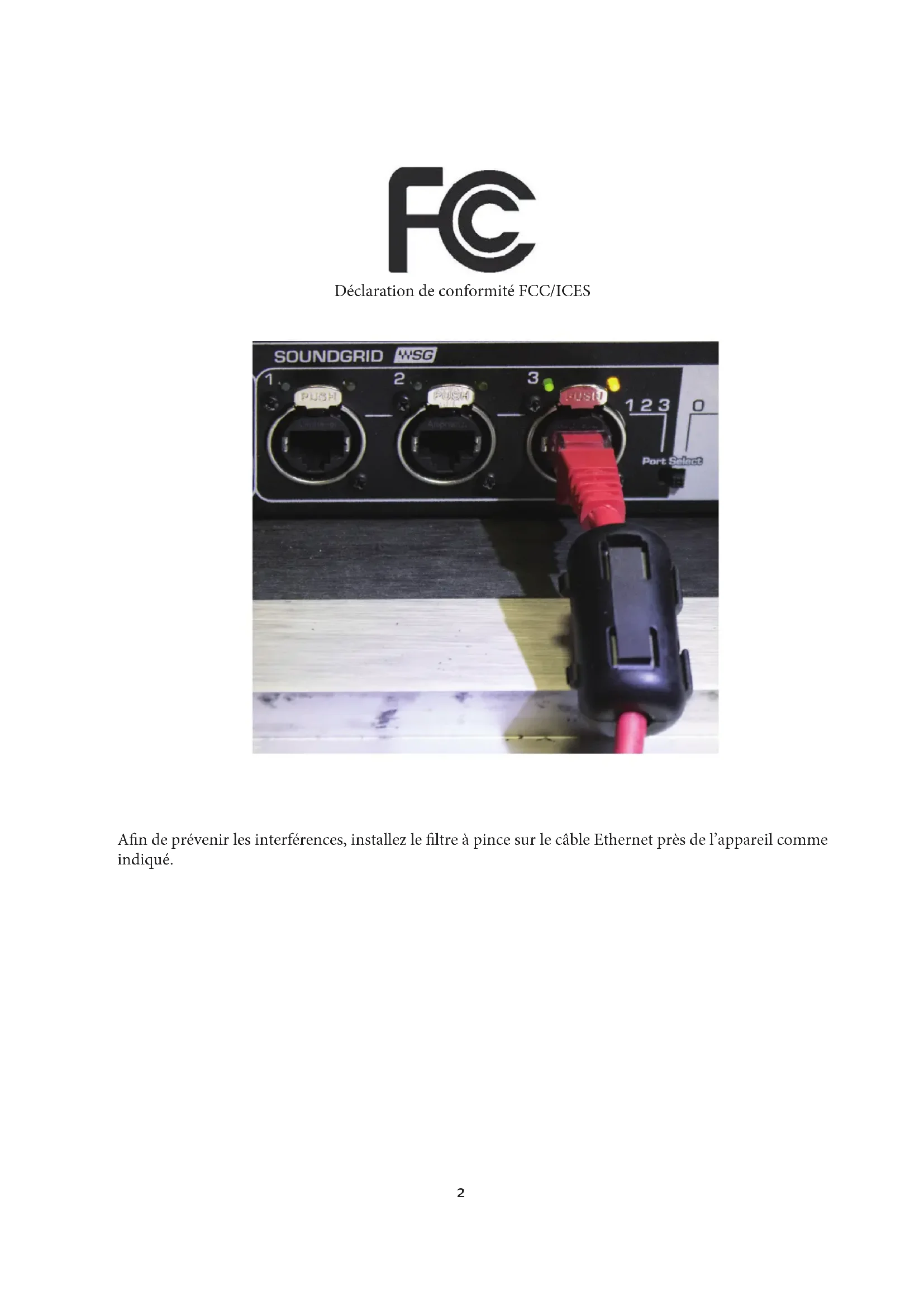 stage Interface de mixage Mode d’emploi www.peaveycommercialaudio.com2 An de prévenir les interférences, installez le ltre à pince sur le câble Ethernet près de l’appareil comme indiqué. Déclaration de conformité FCC/ICES3 tactus