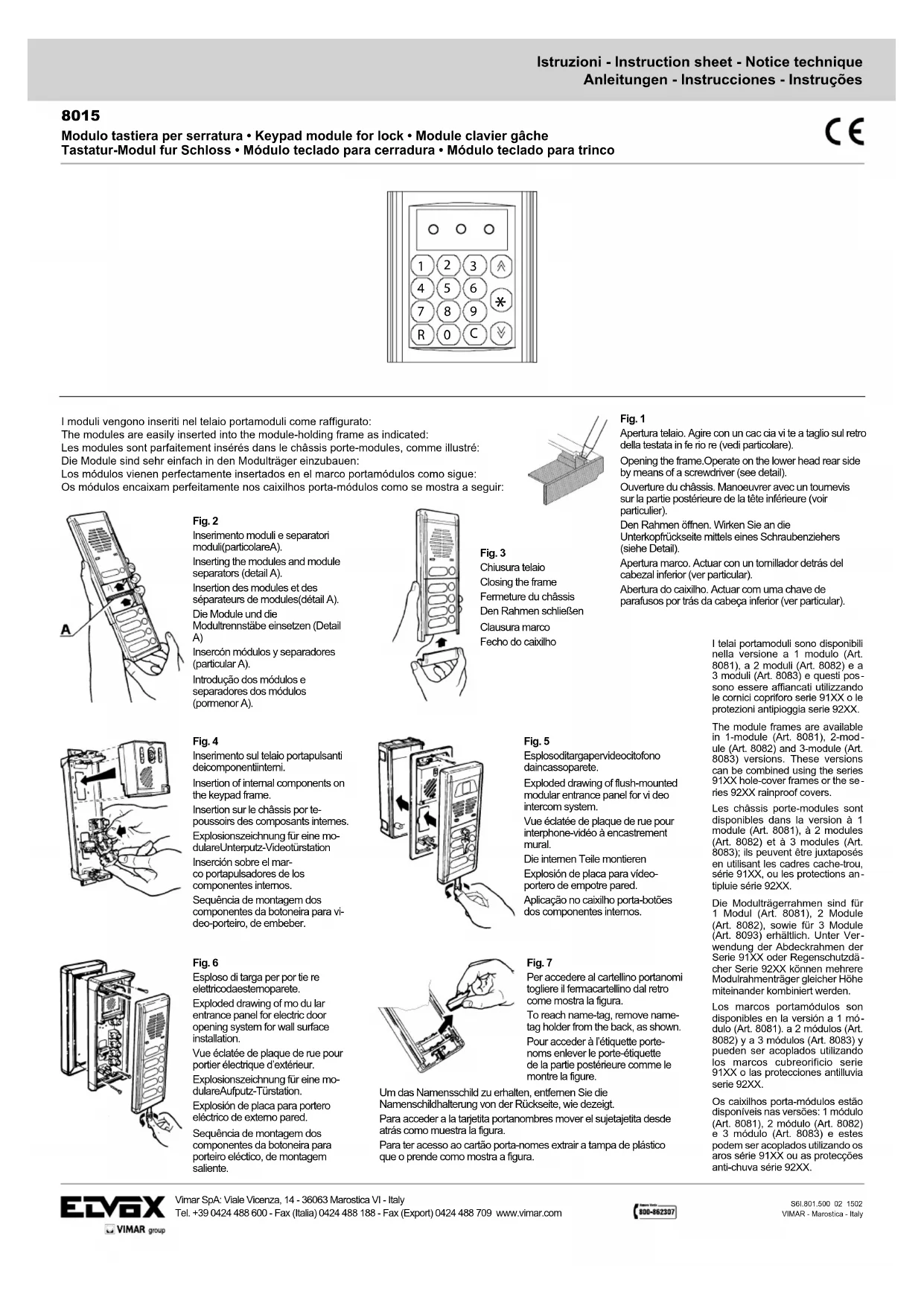 Retrouvez gratuitement la notice de l'appareil ELVOX 8015 Vimar au format PDF.