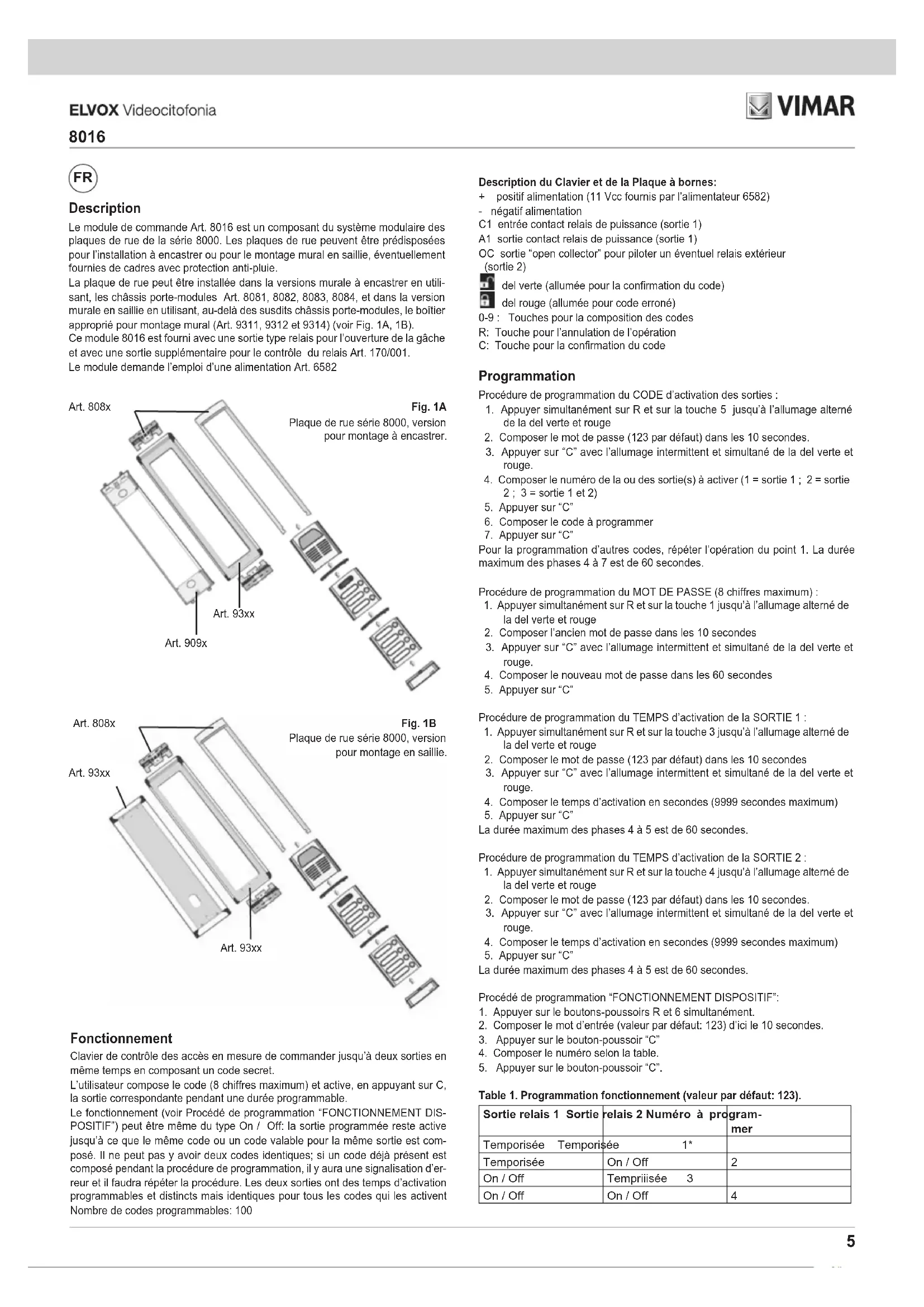 ELVOX 8016 - Système de contrôle d'accès Vimar - Notice d'utilisation et mode d'emploi gratuit