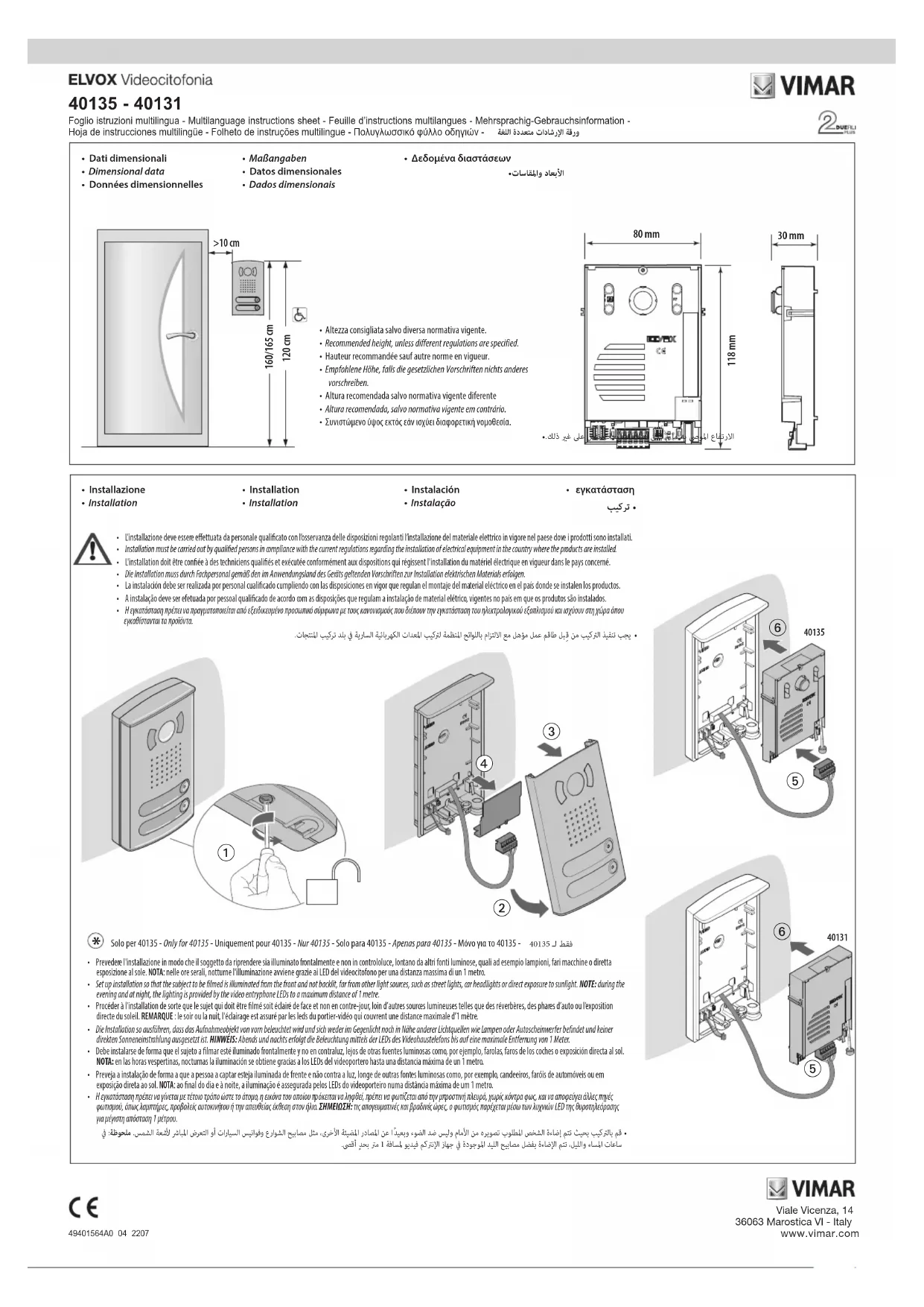 Retrouvez gratuitement la notice de l'appareil ELVOX 40135 Vimar au format PDF.