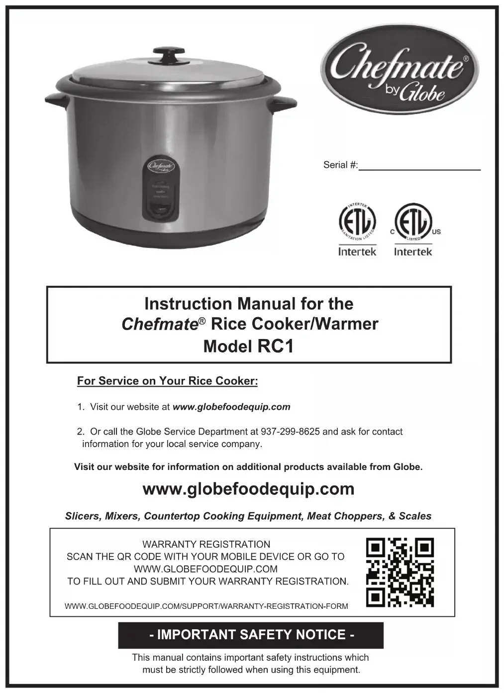 RC1 - Cuiseur à riz Globe - Notice d'utilisation et mode d'emploi gratuit
