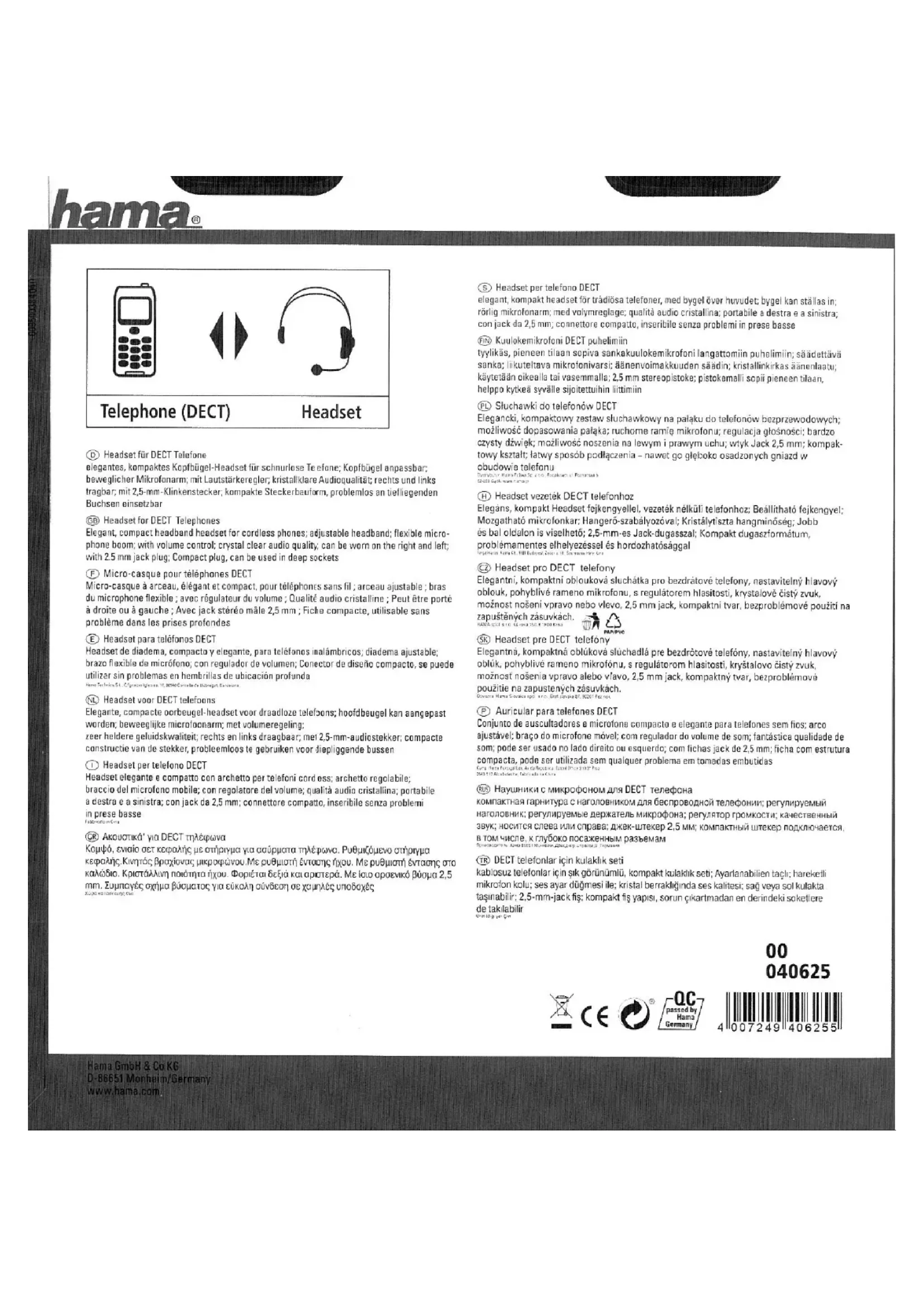 Retrouvez gratuitement la notice de l'appareil 40625 HAMA au format PDF.
