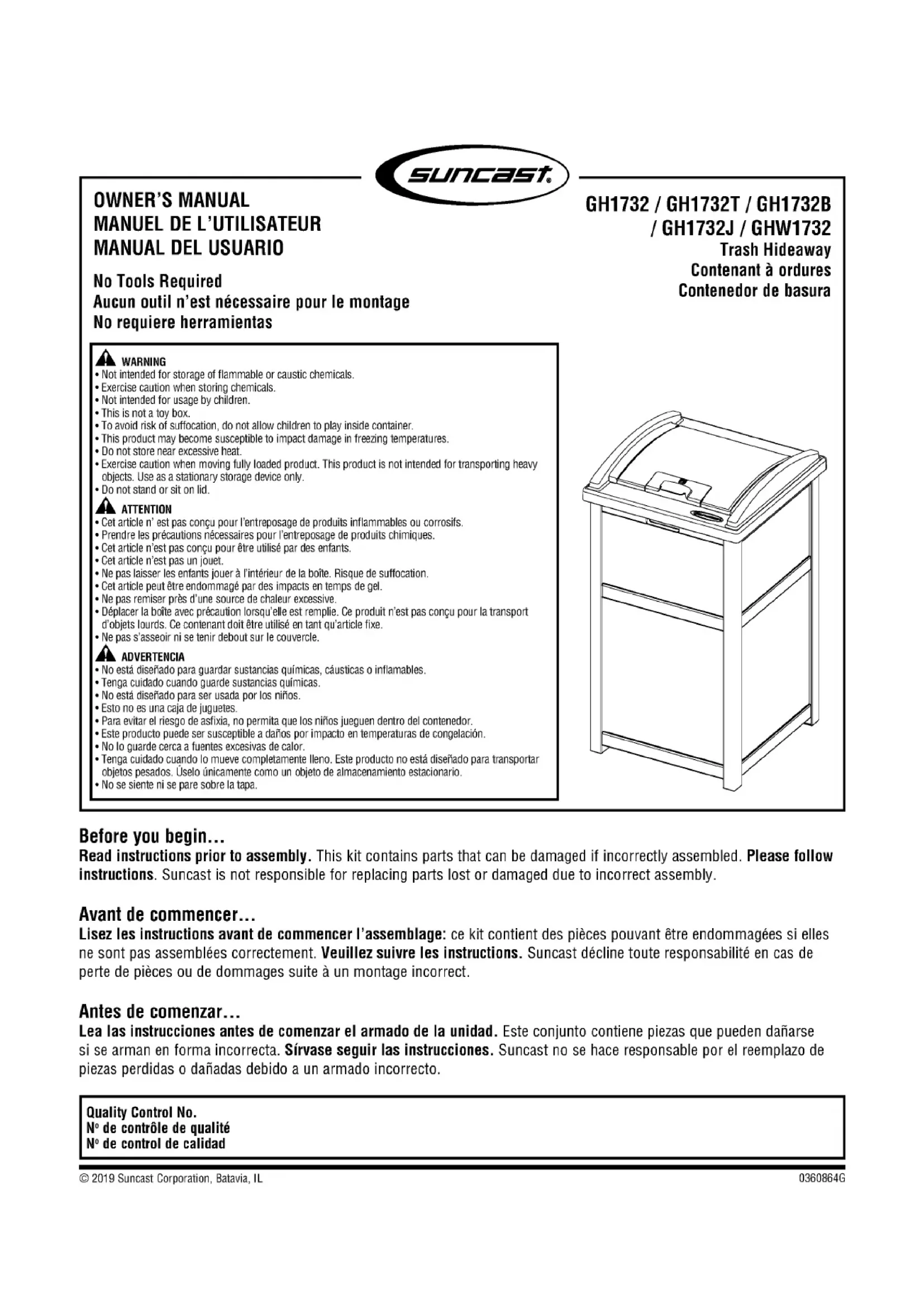 GH1732C - Poubelle Suncast - Notice d'utilisation et mode d'emploi gratuit