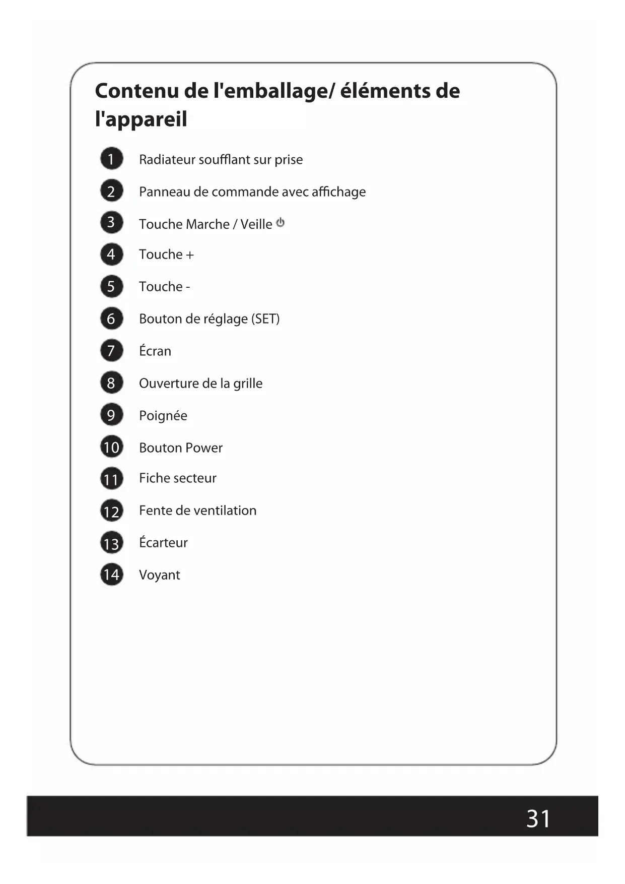 Contenu de l'emballage/ éléments de l'appareil