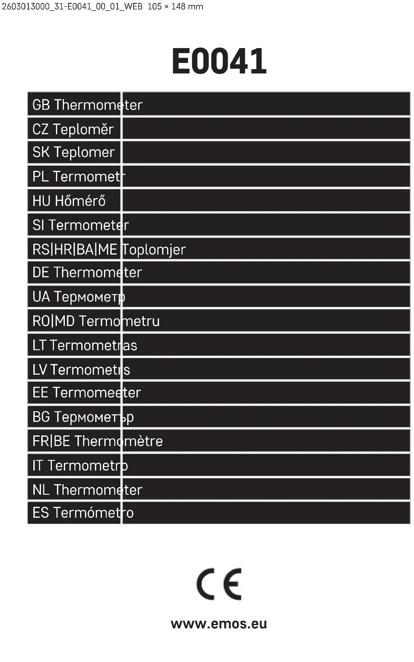 E0041 - Thermomètre Emos - Notice d'utilisation et mode d'emploi gratuit