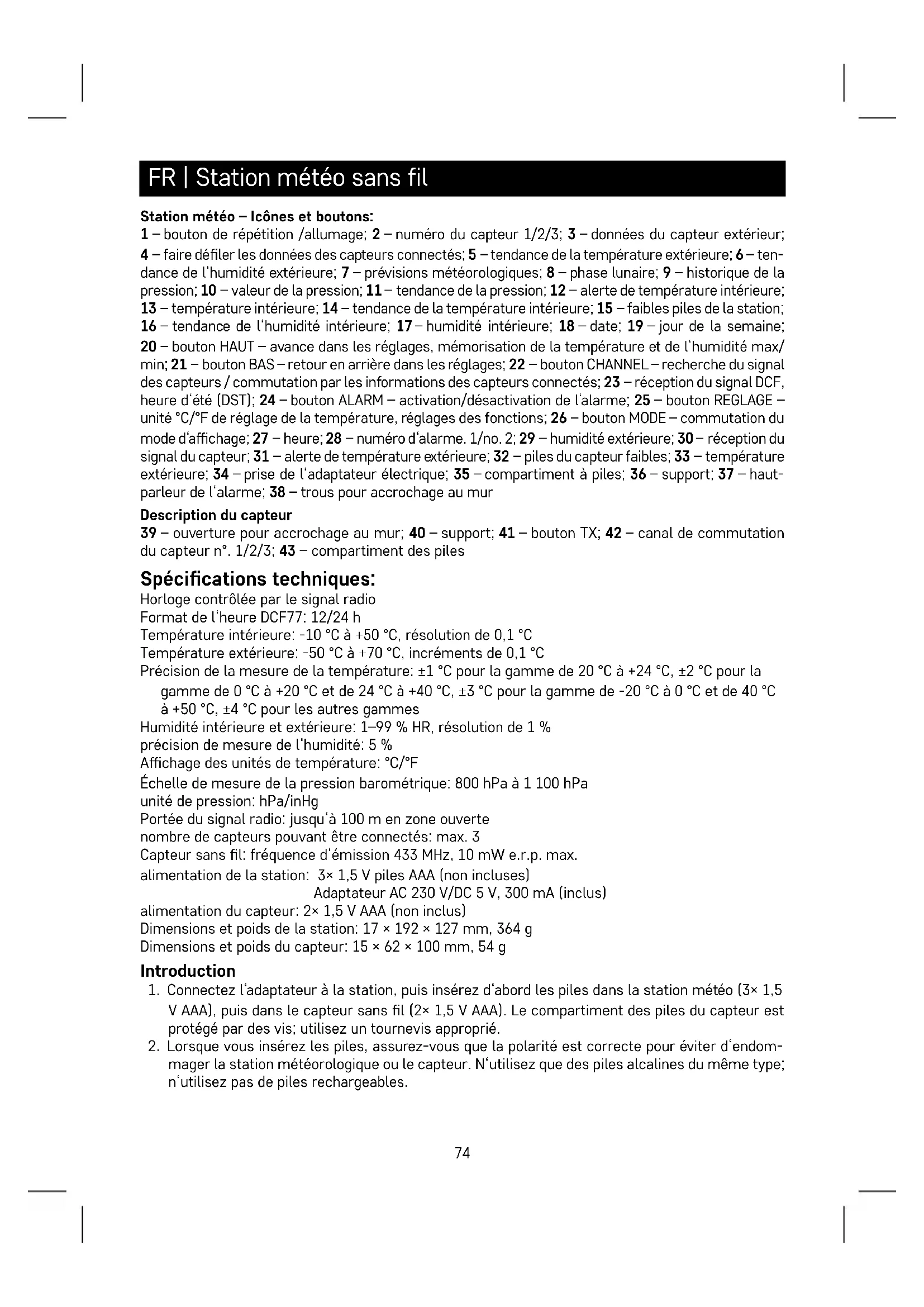 mager la station météorologique ou le capteur. N‘utilisez que des piles alcalines du même type; n‘utilisez pas de piles rechargeables.75