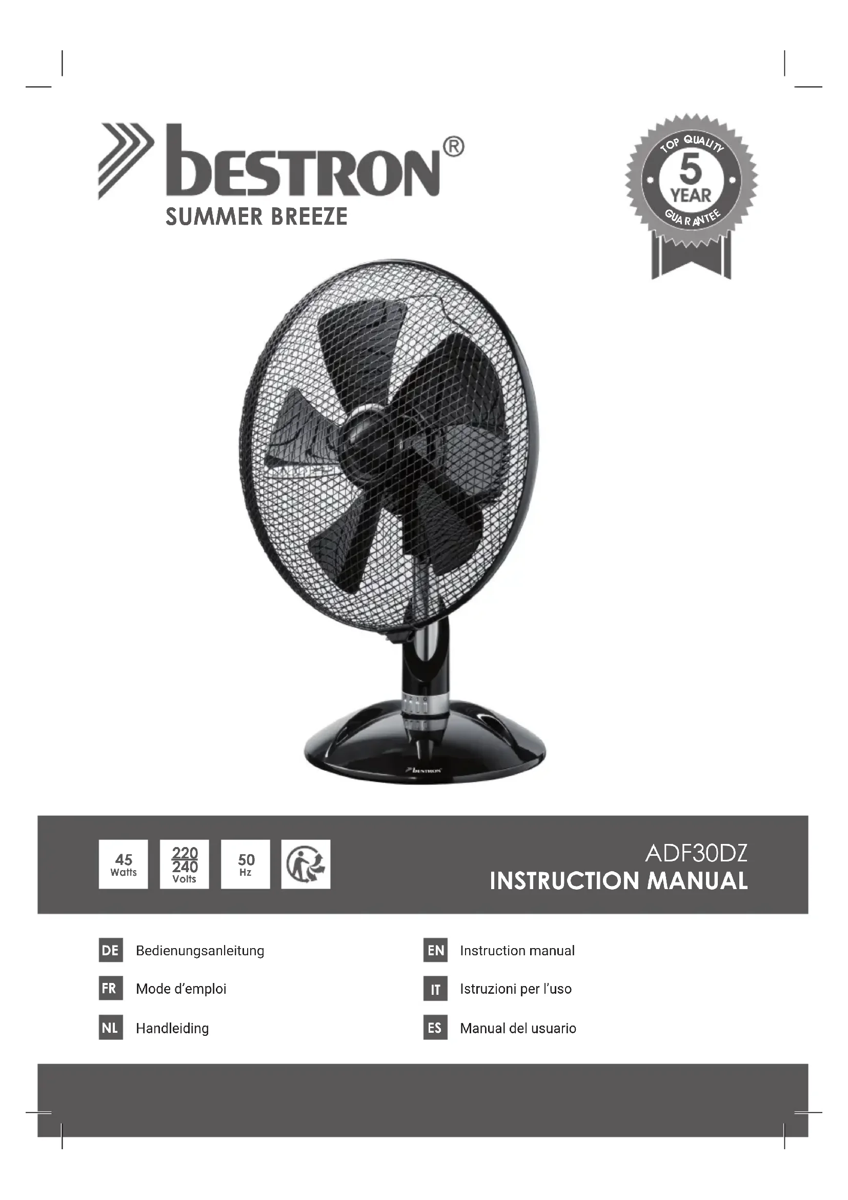 Retrouvez gratuitement la notice de l'appareil ADF30DZ BESTRON au format PDF.