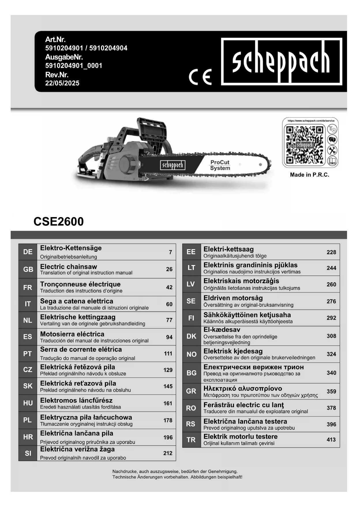 Retrouvez gratuitement la notice de l'appareil CSE2600 SCHEPPACH au format PDF.