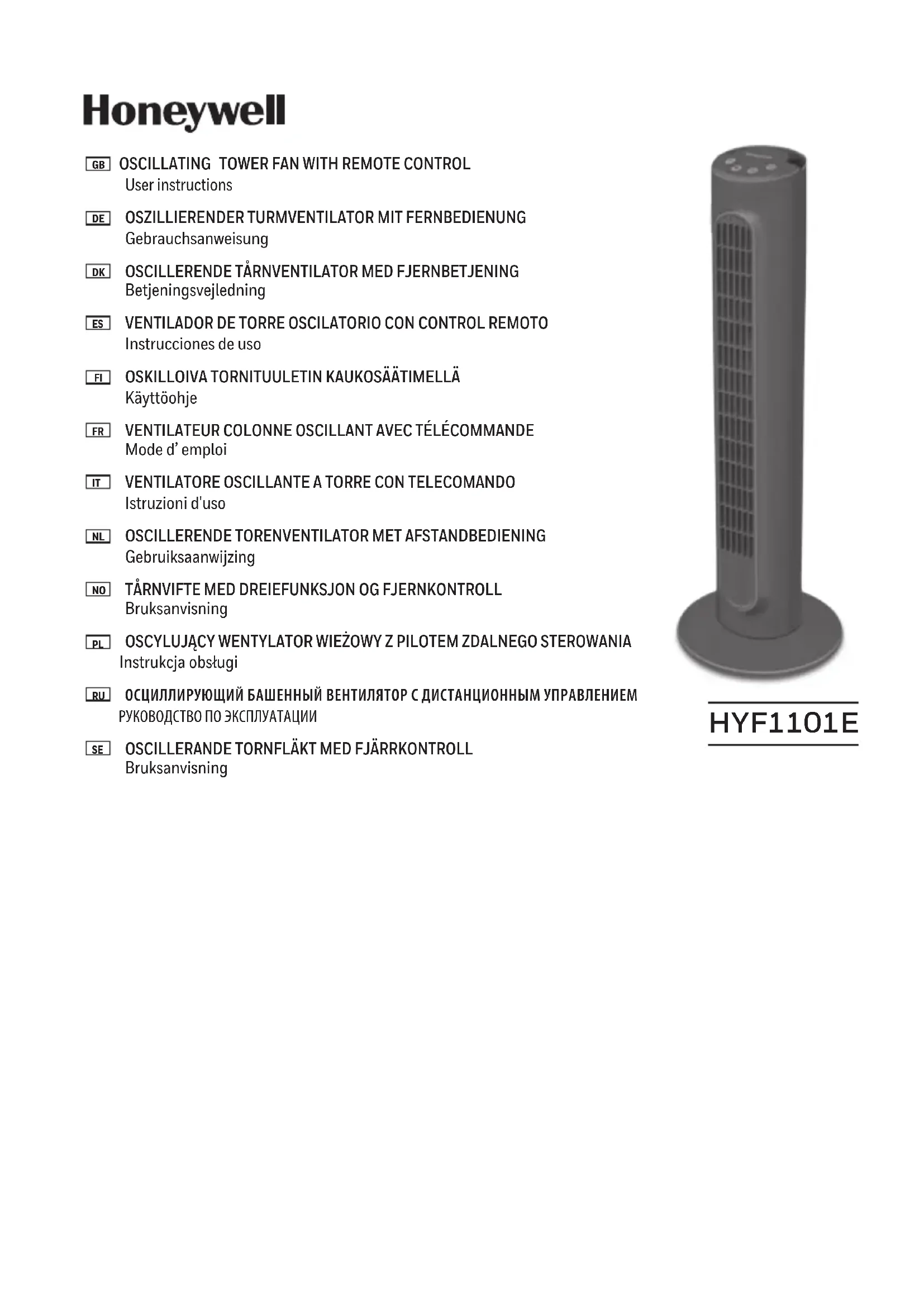 HYF1101E4 - Ventilateur HONEYWELL - Notice d'utilisation et mode d'emploi gratuit