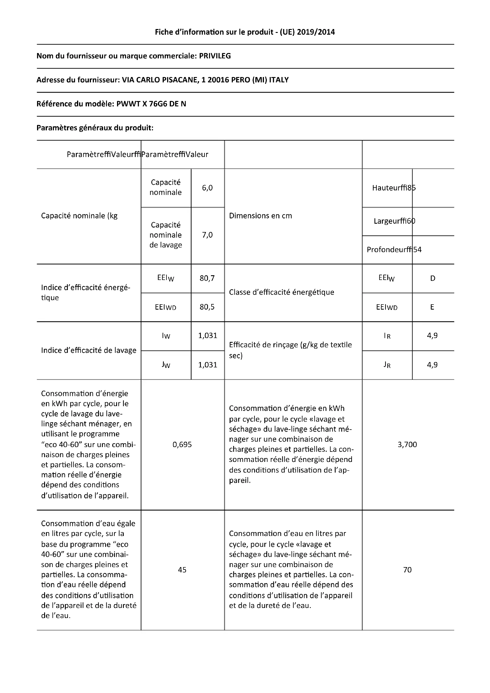 Retrouvez gratuitement la notice de l'appareil PWWT X 76G6 DE N PRIVILEG au format PDF.