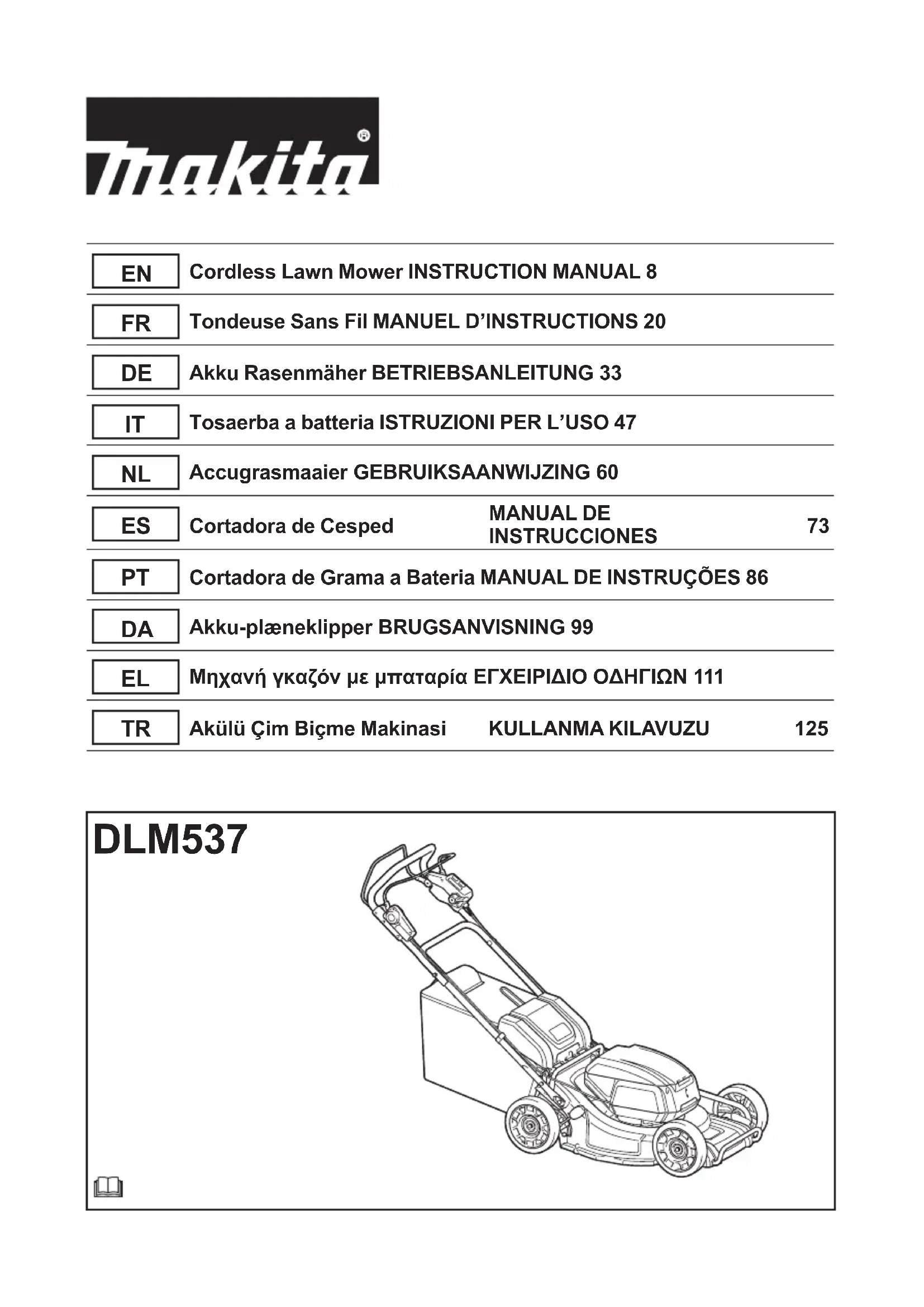 DLM537 - Tondeuse à gazon MAKITA - Notice d'utilisation et mode d'emploi gratuit