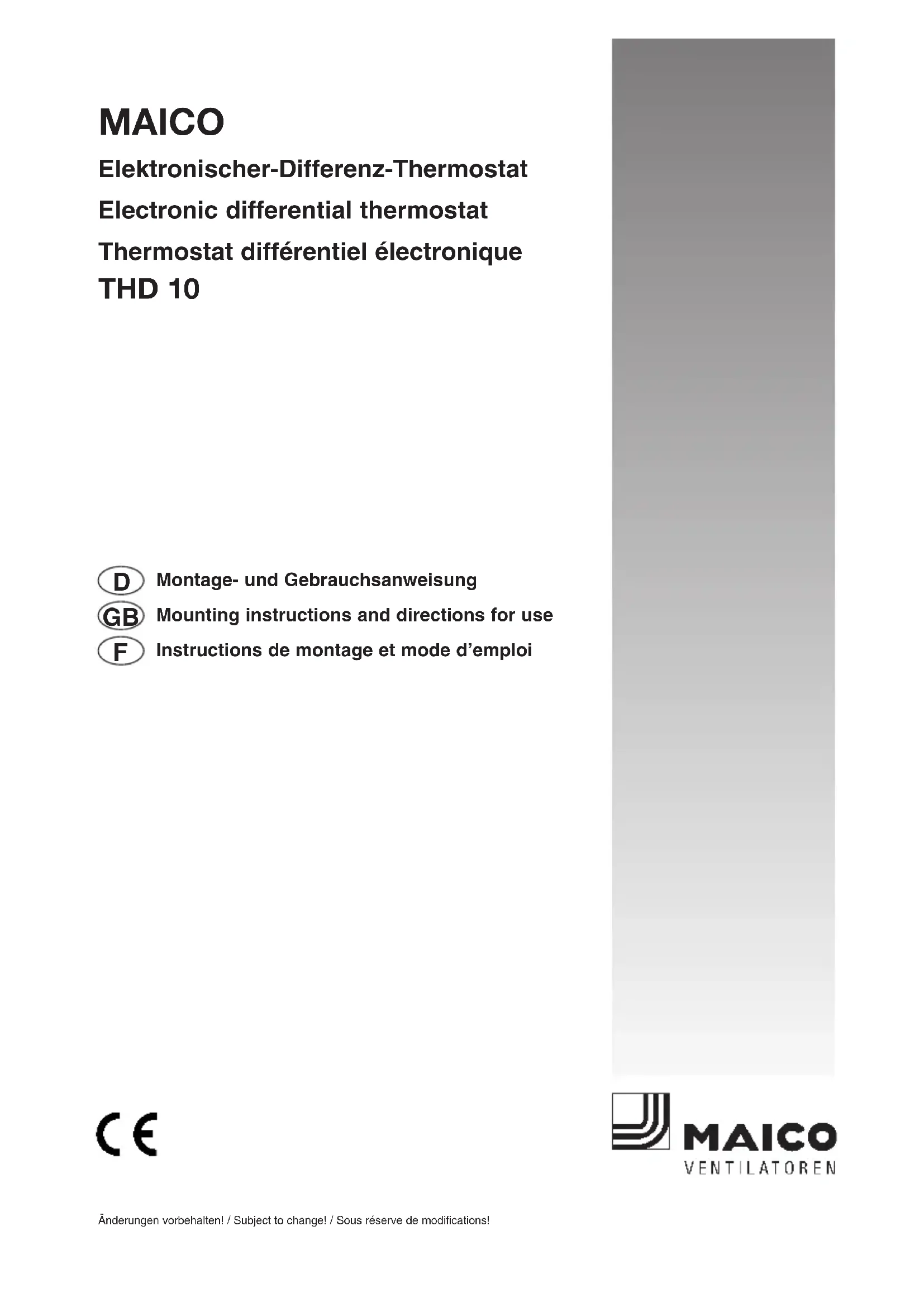 THD 10 - Thermostat Maico - Notice d'utilisation et mode d'emploi gratuit