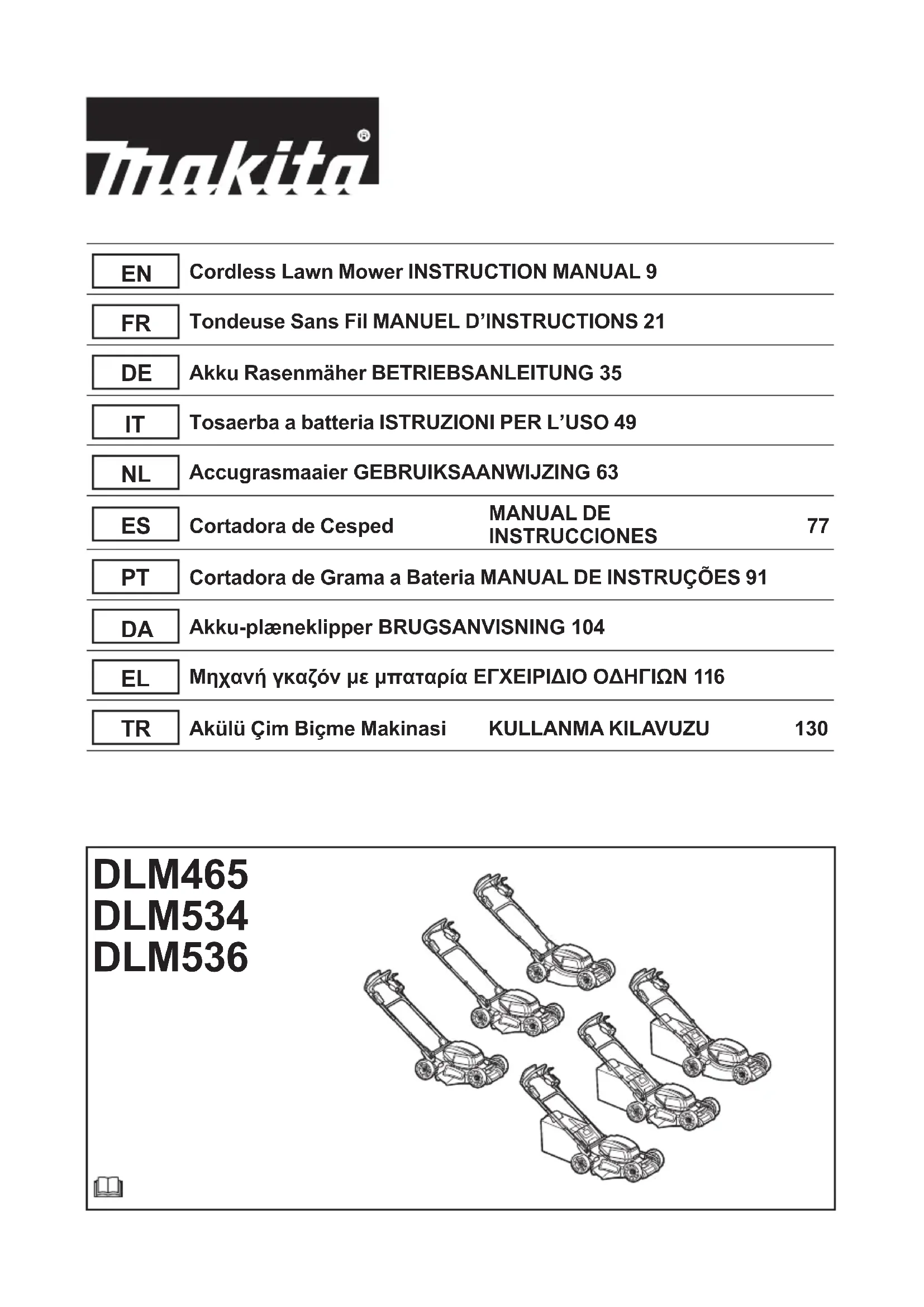 DLM536 - Tondeuse à gazon MAKITA - Notice d'utilisation et mode d'emploi gratuit
