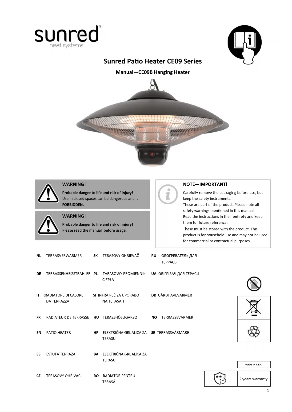 CE09B - Chauffage SunRed - Notice d'utilisation et mode d'emploi gratuit