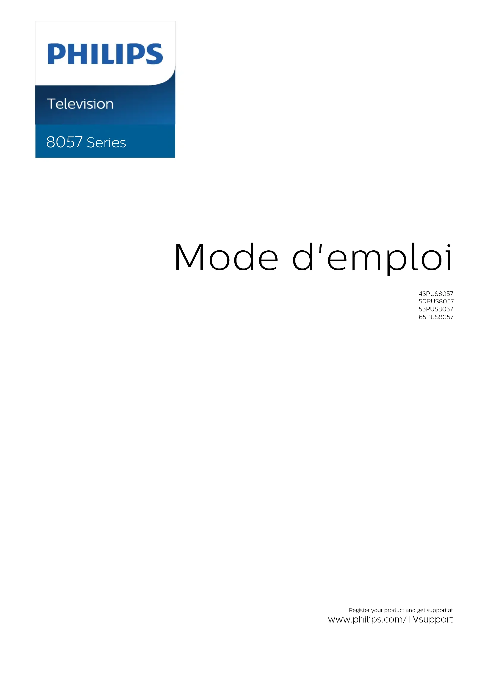 Retrouvez gratuitement la notice de l'appareil 65PUS8057 PHILIPS au format PDF.