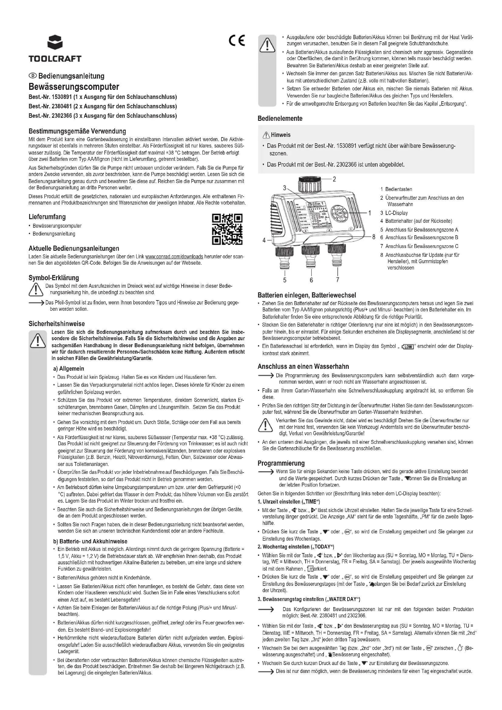 1530891 - Programmateur d'arrosage Toolcraft - Notice d'utilisation et mode d'emploi gratuit