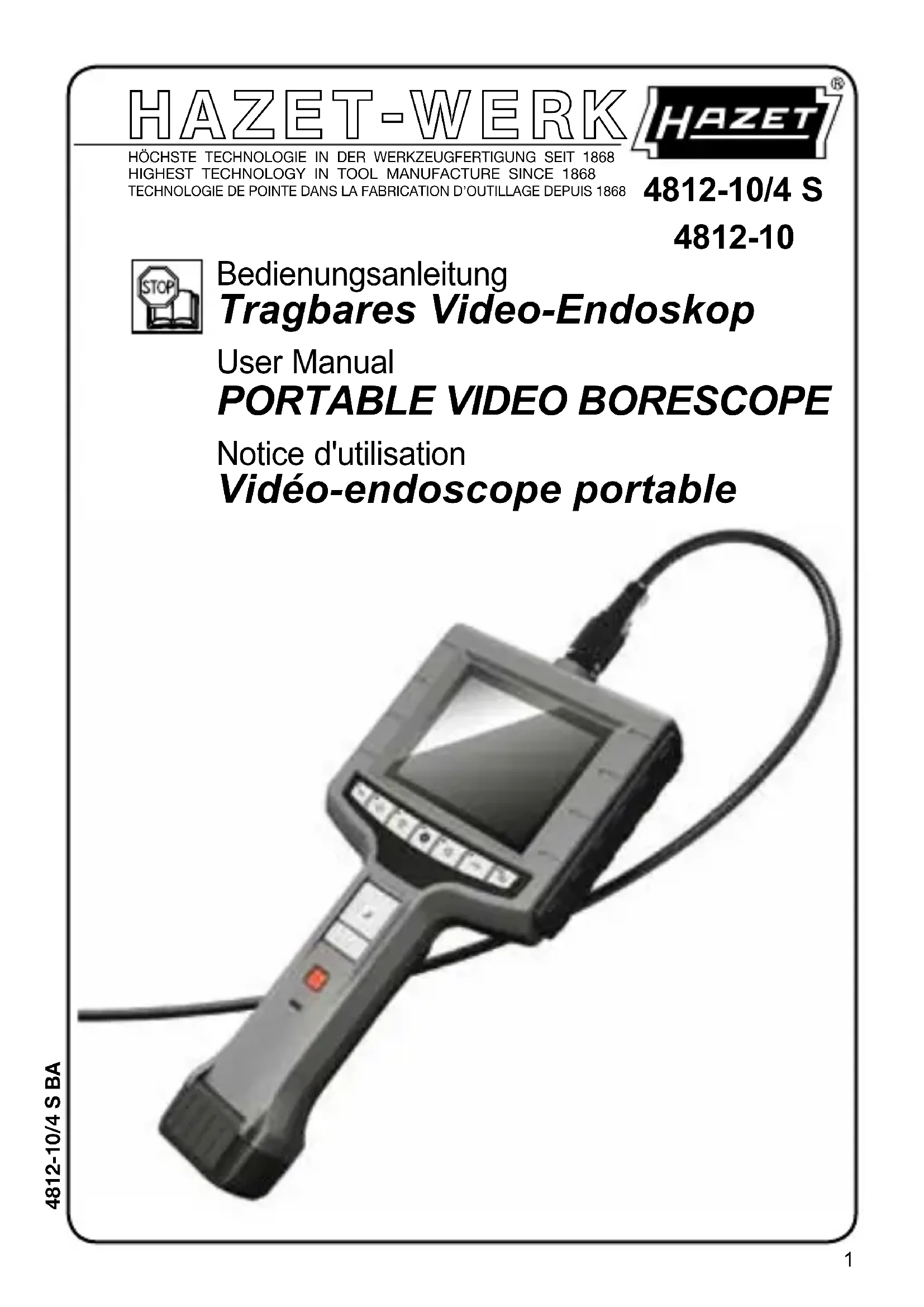 4812104S - Caméra vidéo Hazet - Notice d'utilisation et mode d'emploi gratuit
