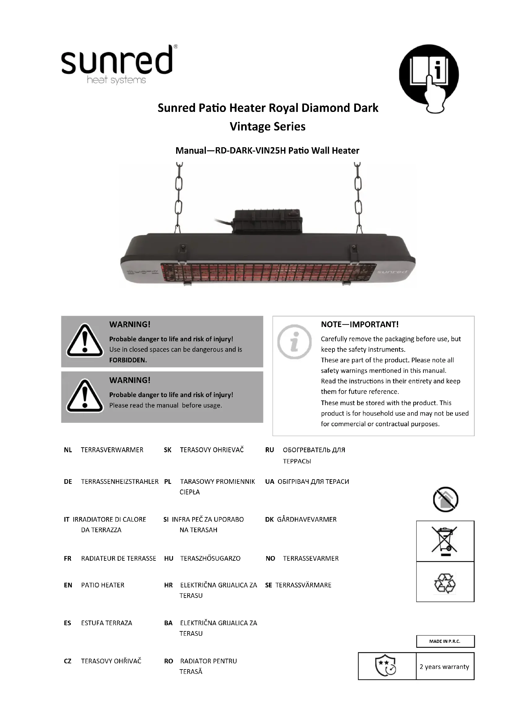 RDDARKVIN25H - Chauffage SunRed - Notice d'utilisation et mode d'emploi gratuit