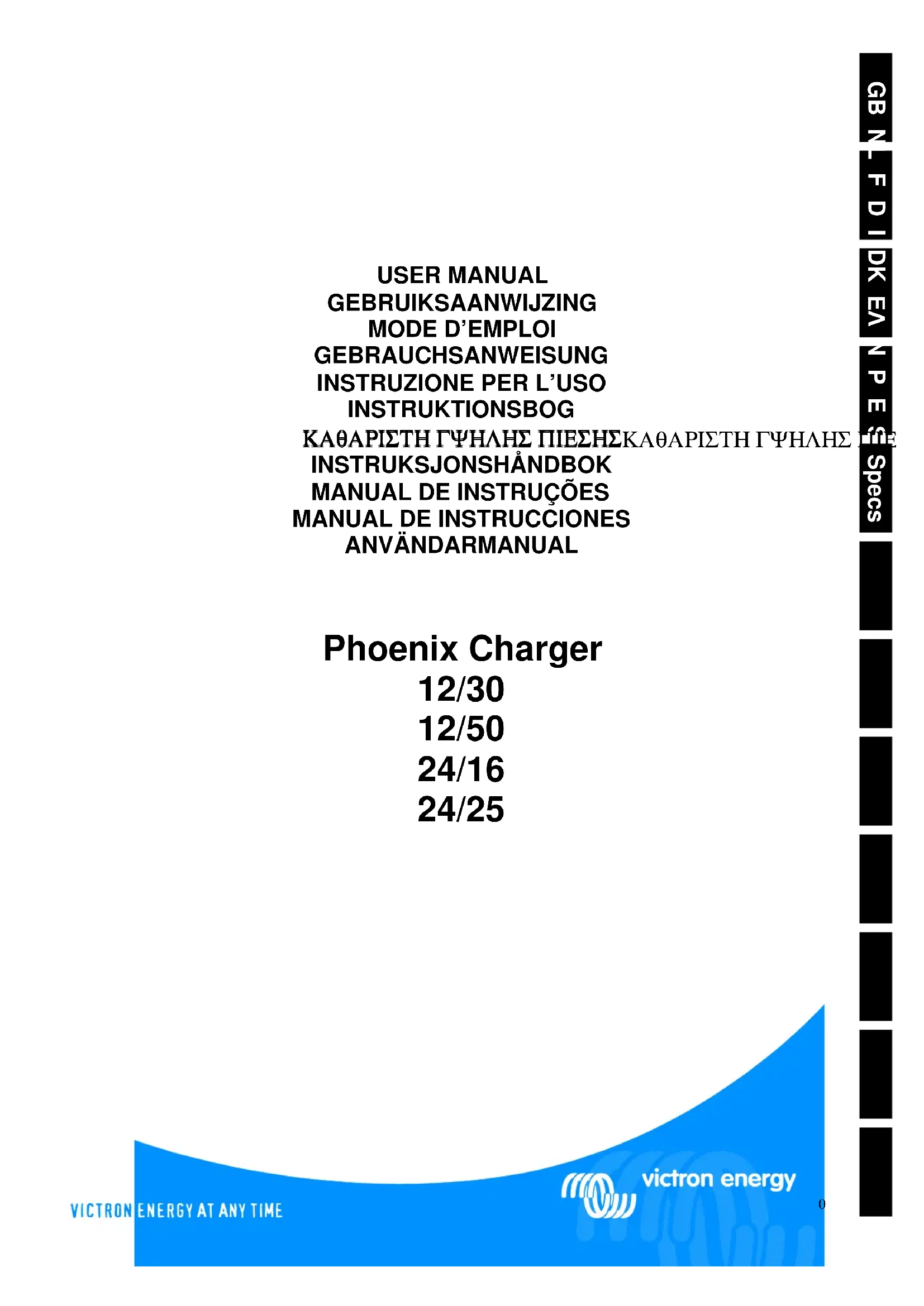 Retrouvez gratuitement la notice de l'appareil Phoenix Charger VICTRON ENERGY au format PDF.