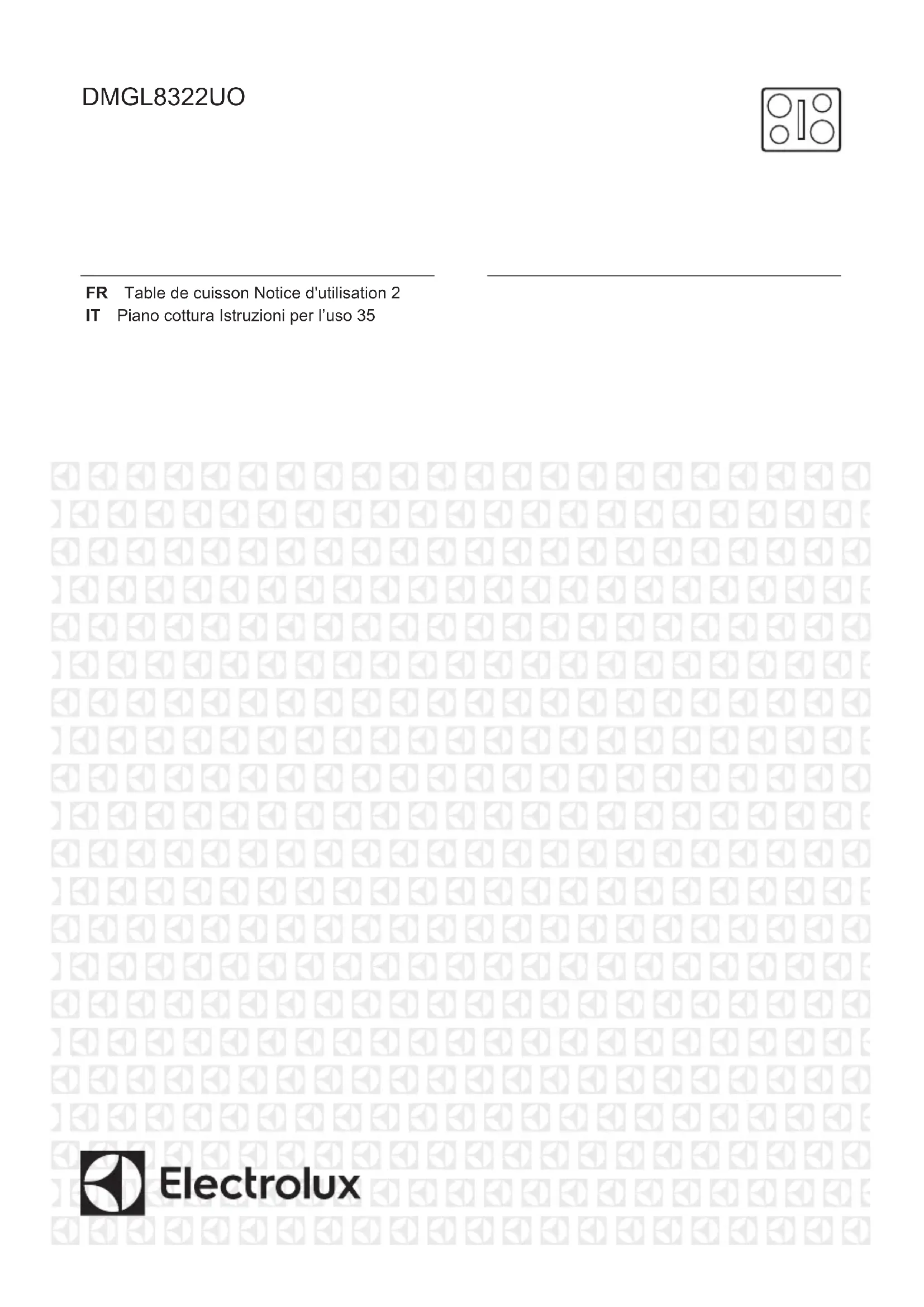 Identification du modèle DMGL8322UO Type de table de cuisson Plan de cuisson in‐ tégré Nombre de zones de cuisson 4 Technologie de chauffage Induction www.electrolux.com30Diamètre des zones de cuisson circu‐ laires (Ø) Avant gauche Arrière gauche Avant droite Arrière droite