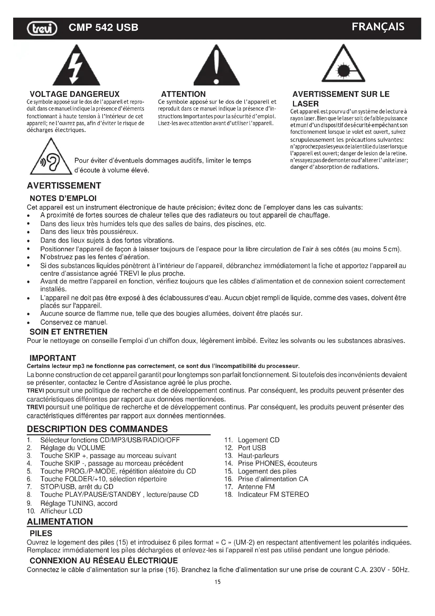 CMP 542 USB - Lecteur/enregistreur de cd Trevi - Notice d'utilisation et mode d'emploi gratuit