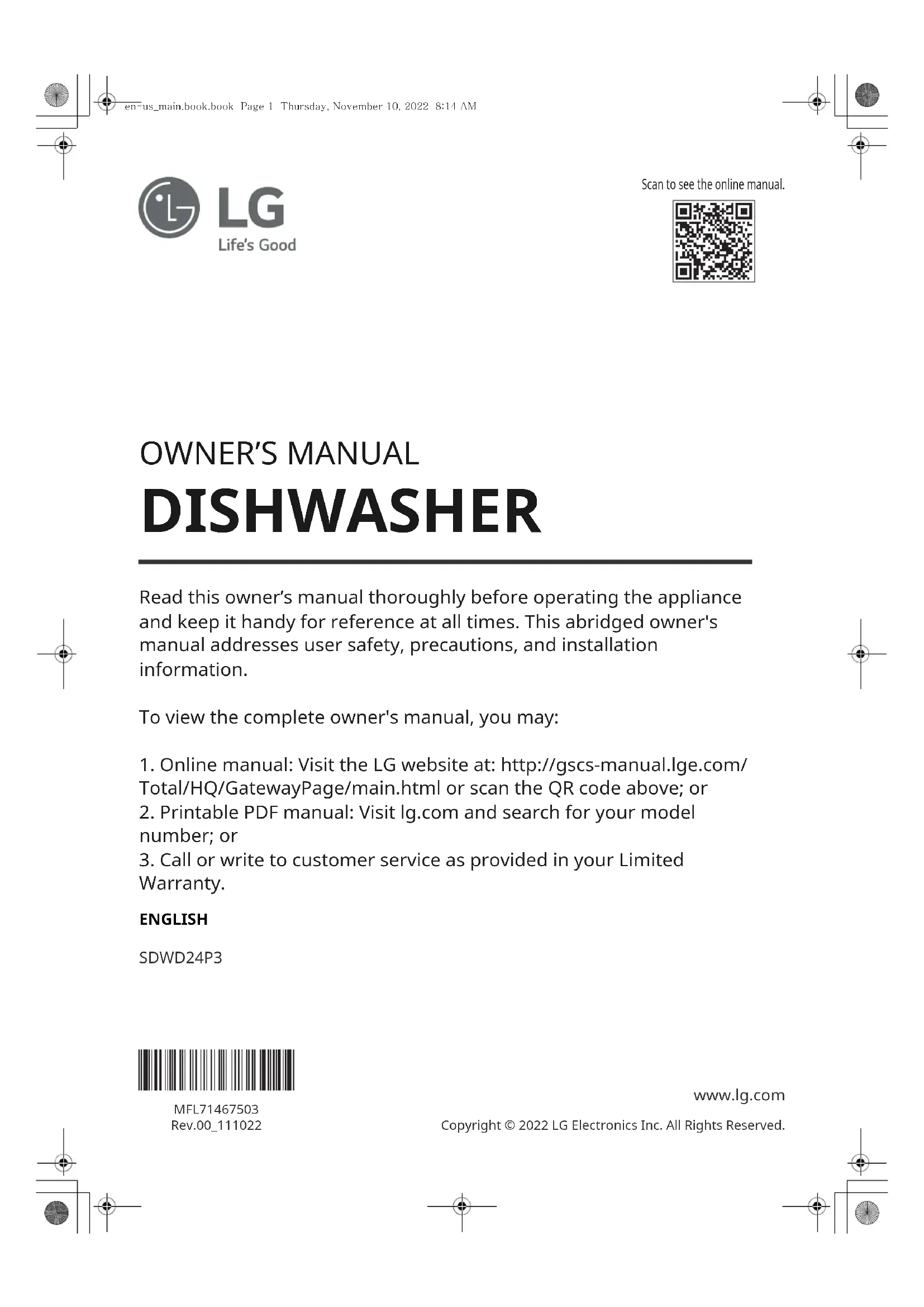 Studio SDWD24P3 - Lave-vaisselle LG - Notice d'utilisation et mode d'emploi gratuit