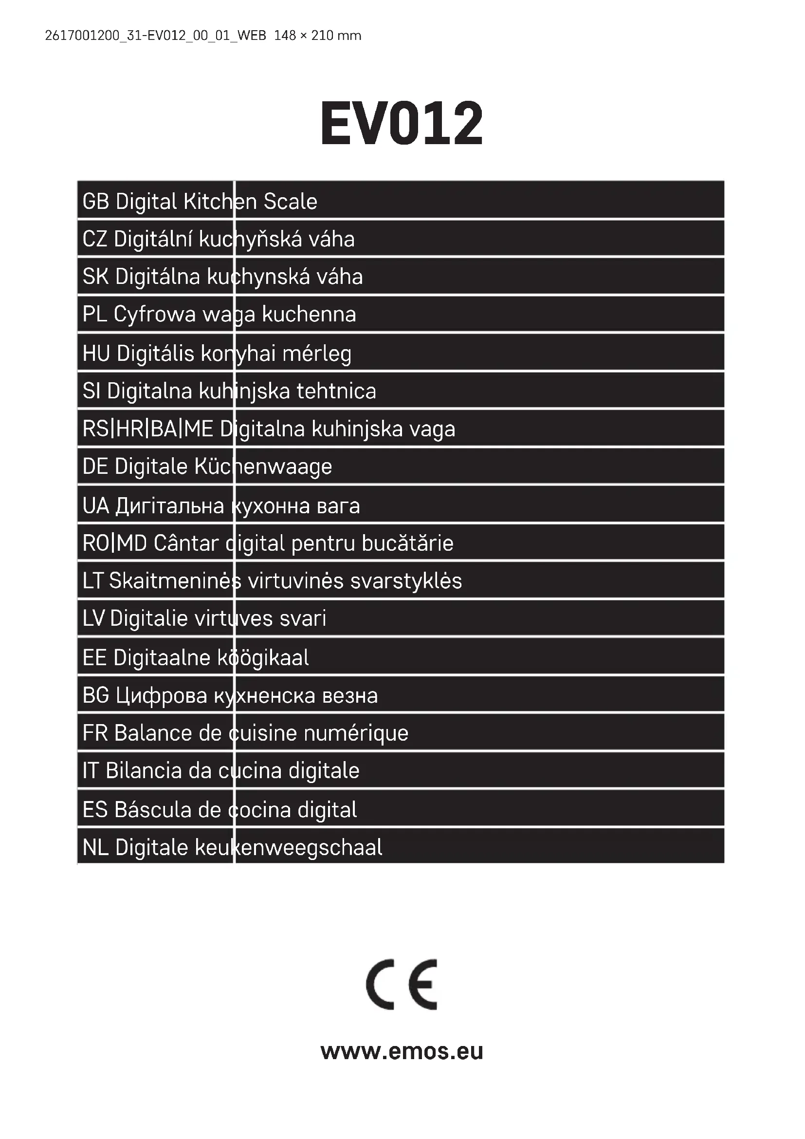 EV012 - Balances de cuisine Emos - Notice d'utilisation et mode d'emploi gratuit